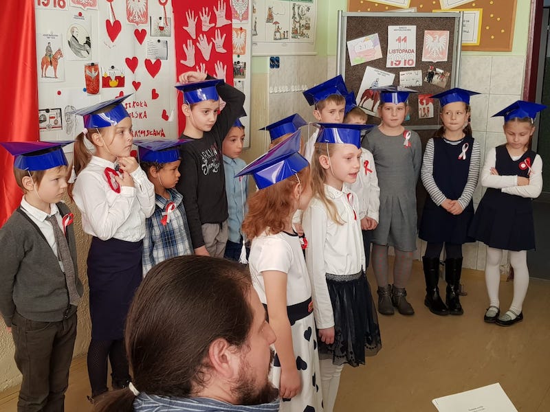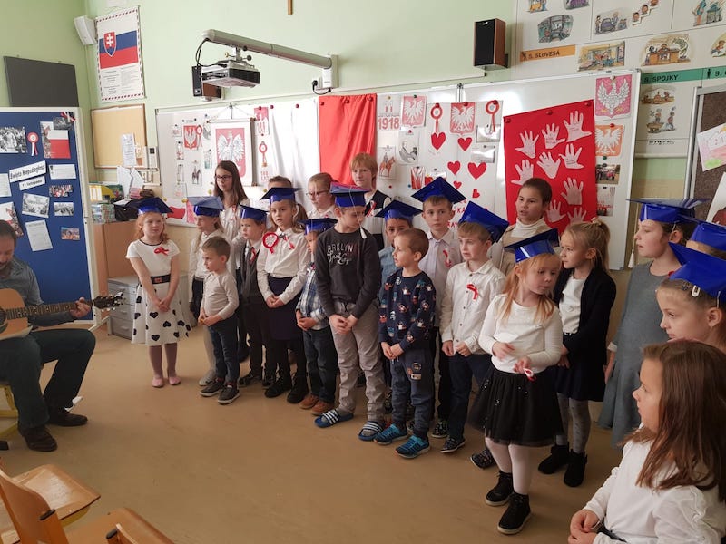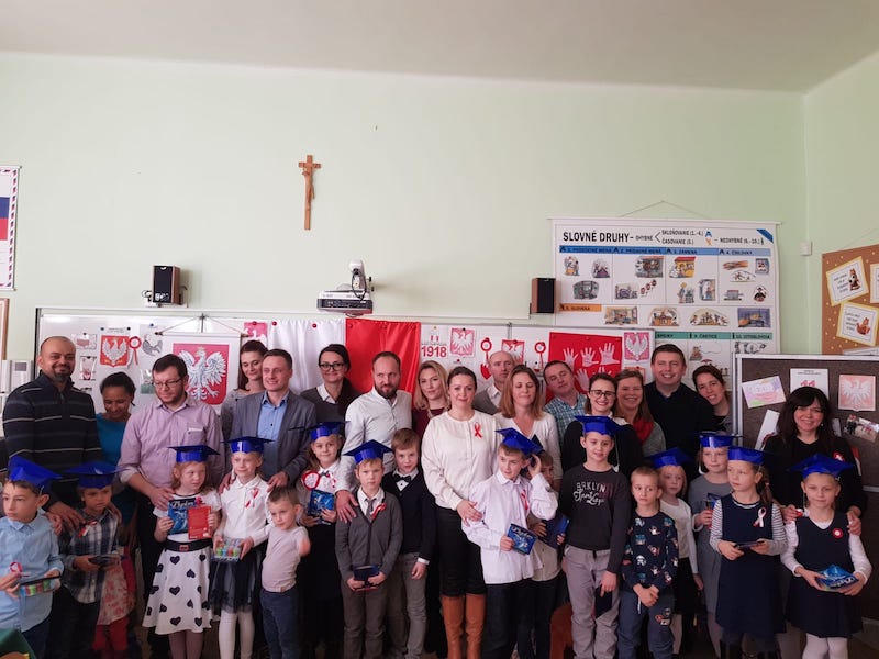 17 września 2018 r. w Szkolnym Punkcie Konsultacyjnym przy Ambasadzie RP w Bratysławie gościliśmy pana Konsula I Radcę Ambasady – Jacka Doliwę z małżonką, pana Radcę – Ministra, Dyrektora Instytutu Polskiego w Bratysławie – Jacka Gajewskiego, panią I Radcę, Dyrektor Instytutu Polskiego w Bratysławie – Monikę Olech z małżonkiem oraz naszych wspaniałych rodziców. Spotkaliśmy się, by w przepięknie udekorowanej pracami naszych uczniów sali śpiewać dla naszej Niepodległej. Jak zwykle odśpiewaliśmy wszystkie zwrotki Hymnu Polskiego, wszyscy śpiewaliśmy o rozmarynie, szarej piechocie i inne pieśni patriotyczne z tamtych czasów. Niejednemu z nas kręciła się łezka w oku… Uroczystość przygotowała nauczycielka WOP-u pani mgr Anna Kasperska.