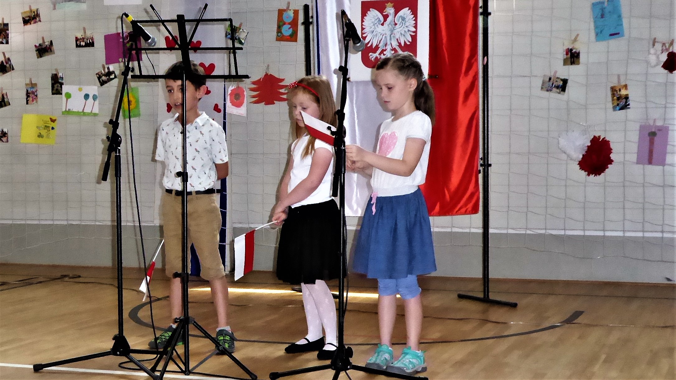 Wzruszeń tego dnia było co niemiara. Postarali się o to również nasi cudowni uczniowie, którzy pod kierunkiem niezastąpionych pań Anety Iwan i Anny Kasperskiej przygotowali bogaty program. Wiersze, pieśni oraz prace plastyczne można było podziwiać w oprawie pięknych dekoracji, które przygotowała mama jednego z uczniów Emilia Kolewa oraz pani Anna Kasperska. Uczniów wsparli także rodzice, którzy bawili zgromadzoną publiczność wykonywanymi wraz ze swoimi dziećmi piosenkami.