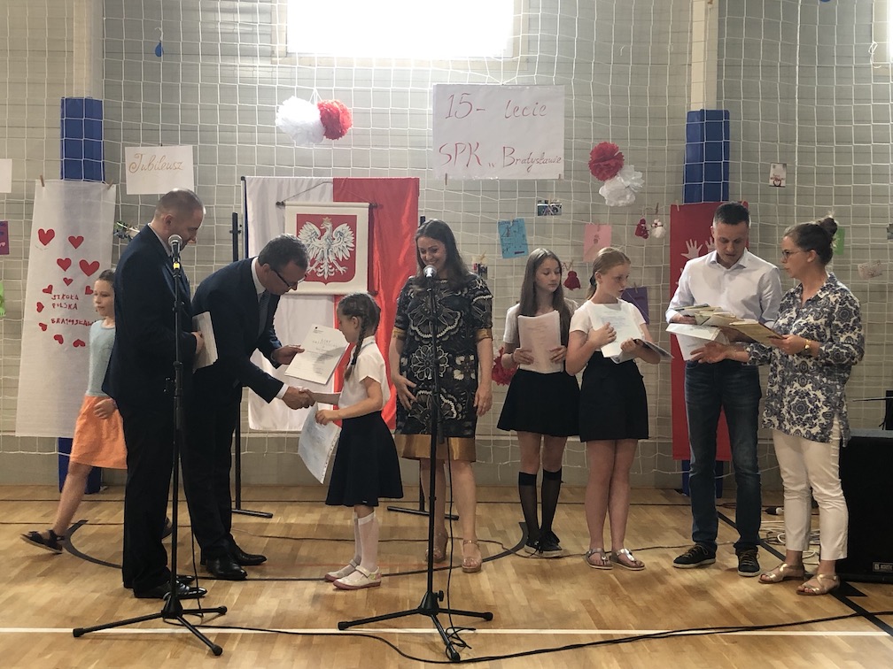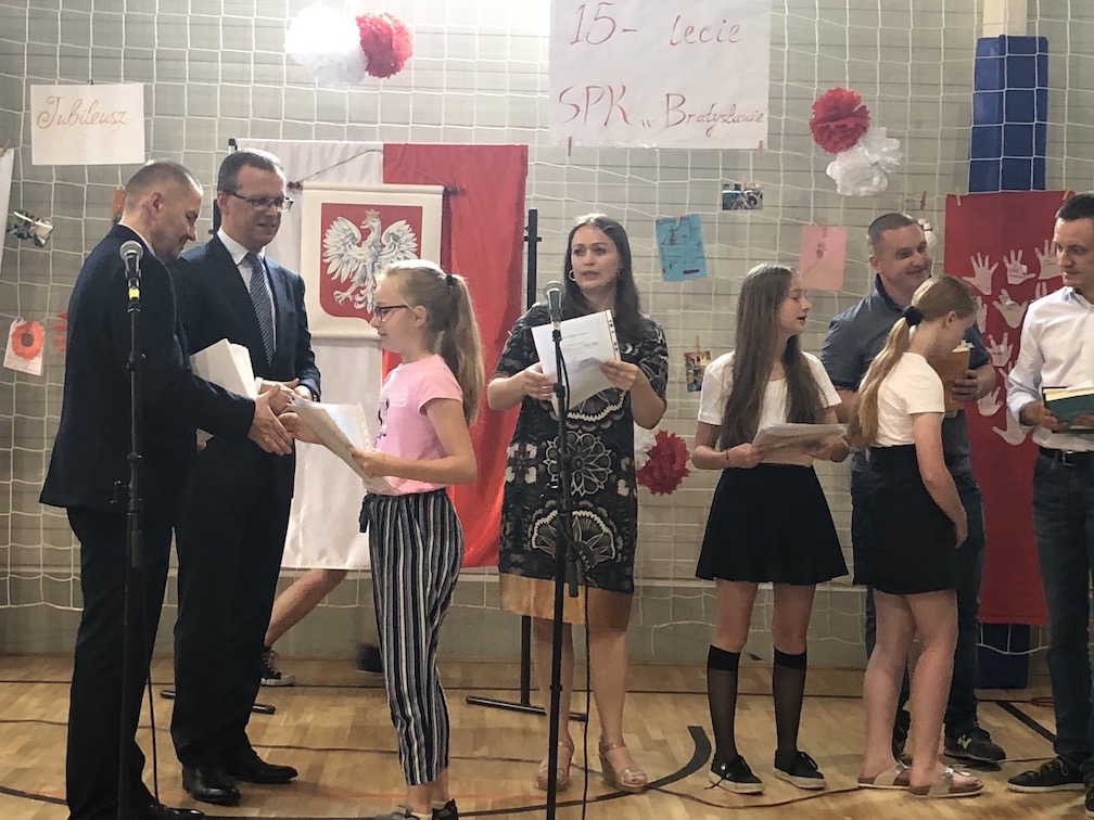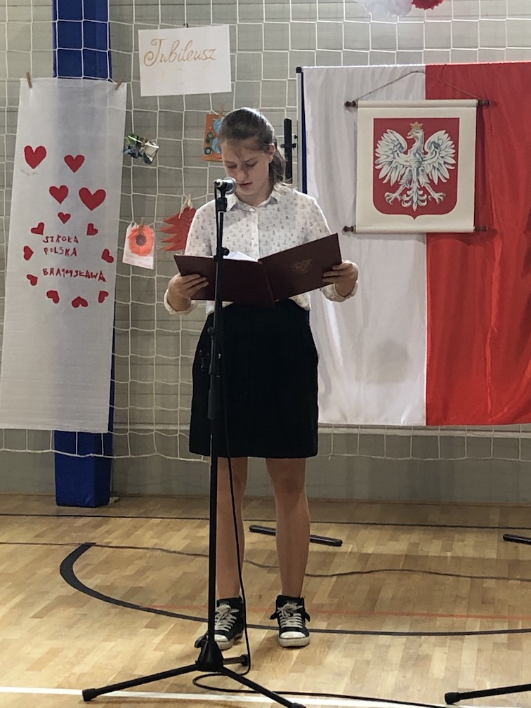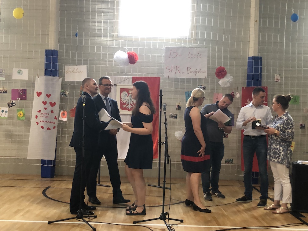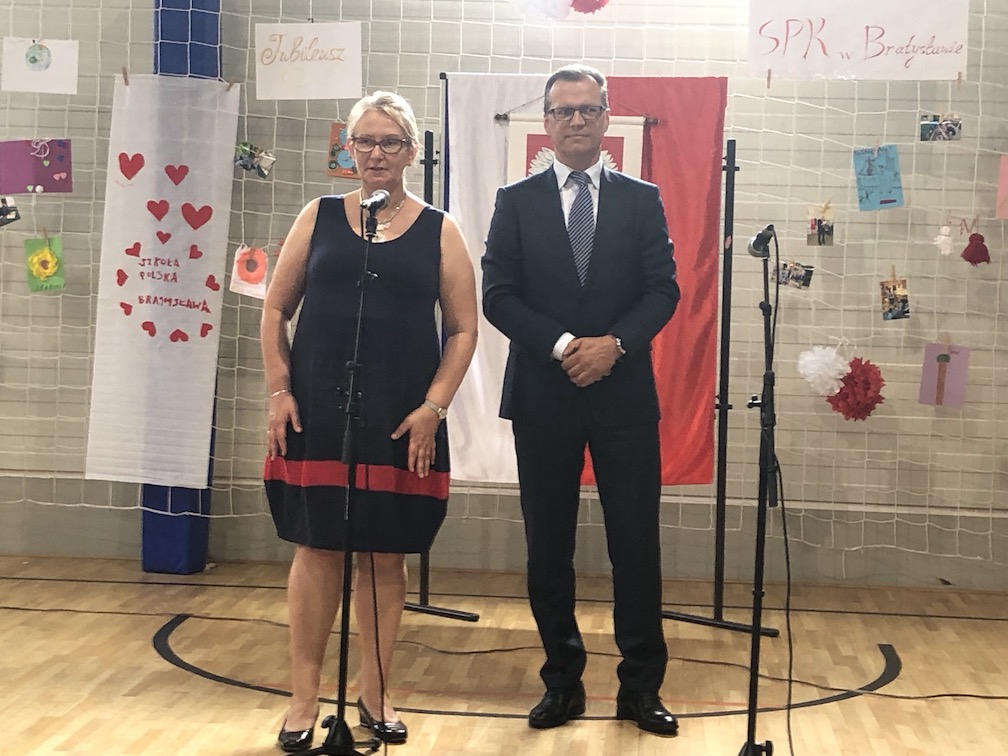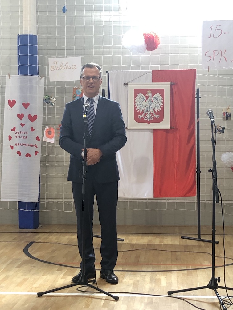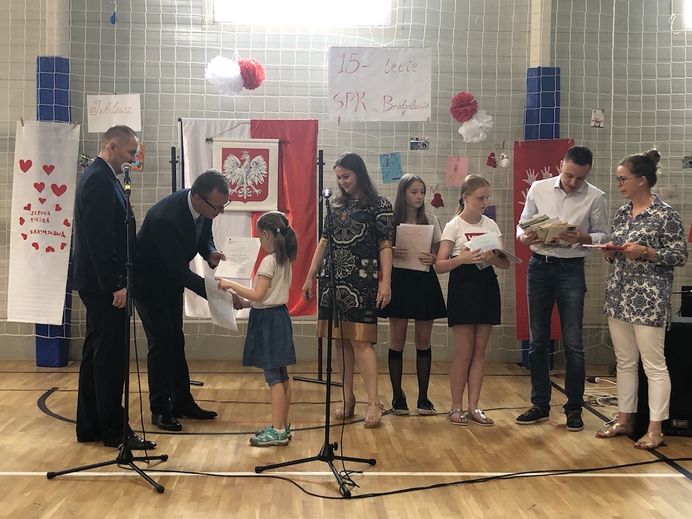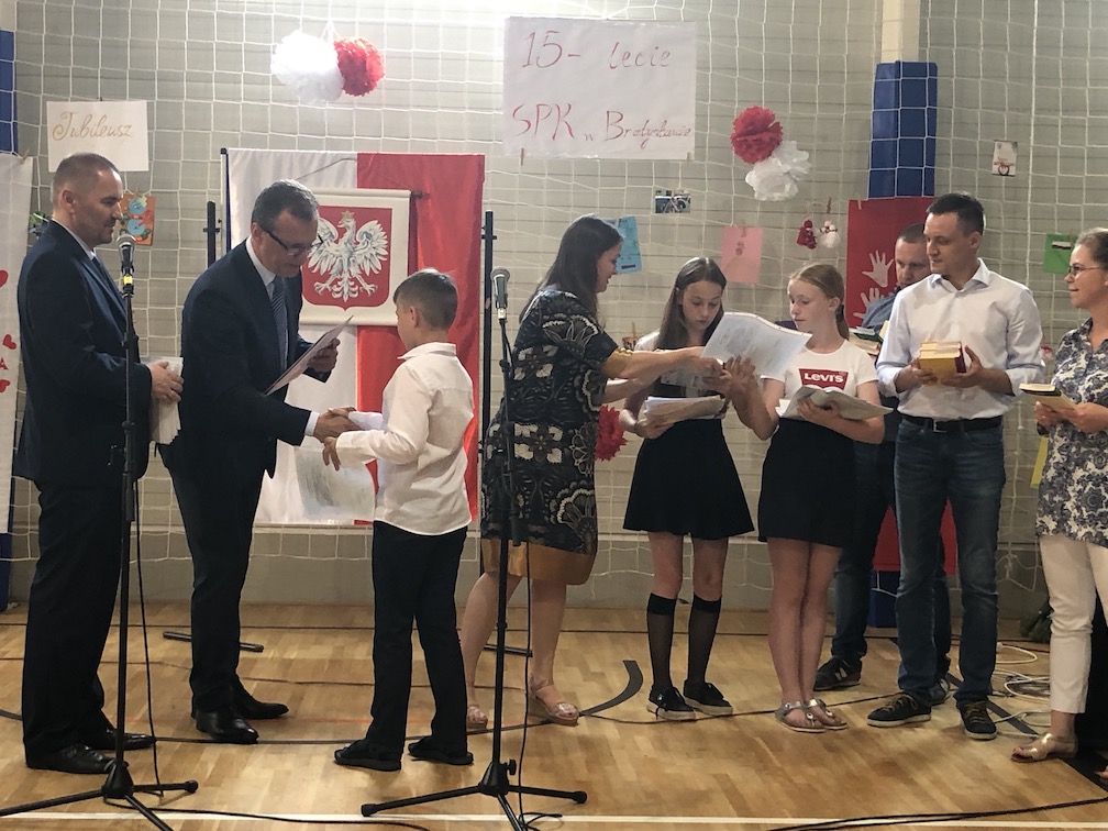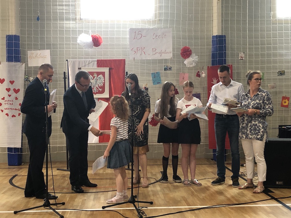 Parafrazując słowa znanej piosenki – 15 lat minęło jak jeden dzień i Szkolny Punkt Konsultacyjny przy Ambasadzie RP w Bratysławie doczekał się małego jubileuszu. 22 czerwca 2019 roku odbyły się uroczyste obchody 15-lecia naszej placówki. Na tak wielkim wydarzeniu nie mogło zabraknąć dostojnych gości. Swoją obecnością zaszczycili nas Ambasador RP na Słowacji Krzysztof Strzałka, Konsul RP na Słowacji Stanisław Kargul, wicedyrektorka Instytutu Polskiego w Bratysławie Monika Olech, przedstawiciele Polonii: prezes Klubu Polskiego Środkowe Poważe pan Zbigniew Podleśny oraz pan Marek Sobek i pani Ilona Wikieł, przedstawicielka zaprzyjaźnionej Szkoły Bułgarskiej im. Christa Boteva w Bratysławie Daniela Dojmová, przedstawiciel Wyższej Szkoły Pedagogicznej Pilgrim Schule w Wiedniu Michael Holzwieser oraz obecni i byli uczniowie wraz z rodzicami.
