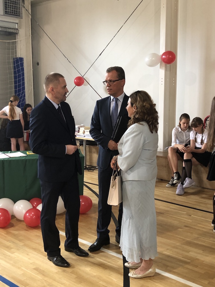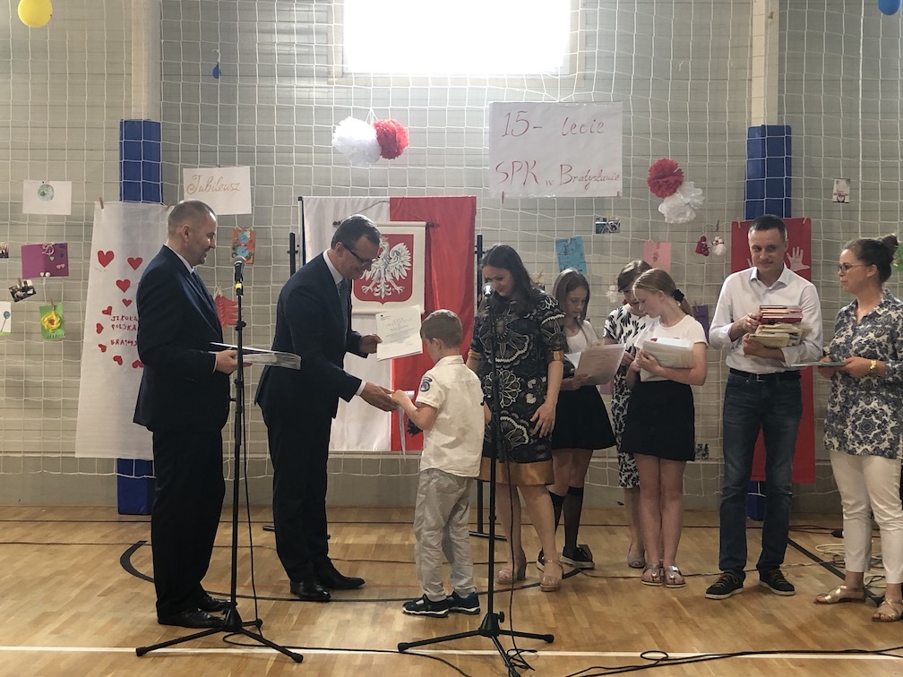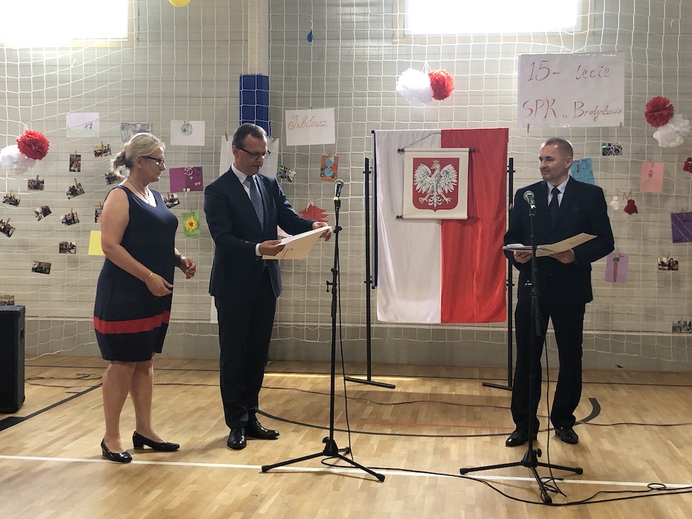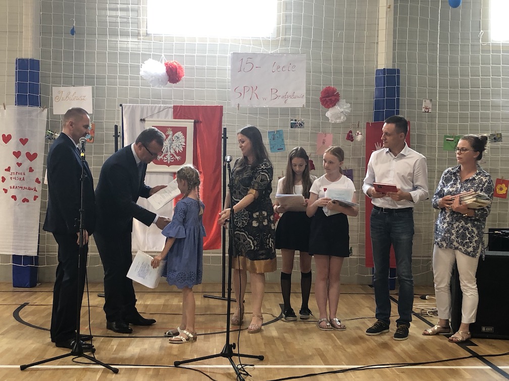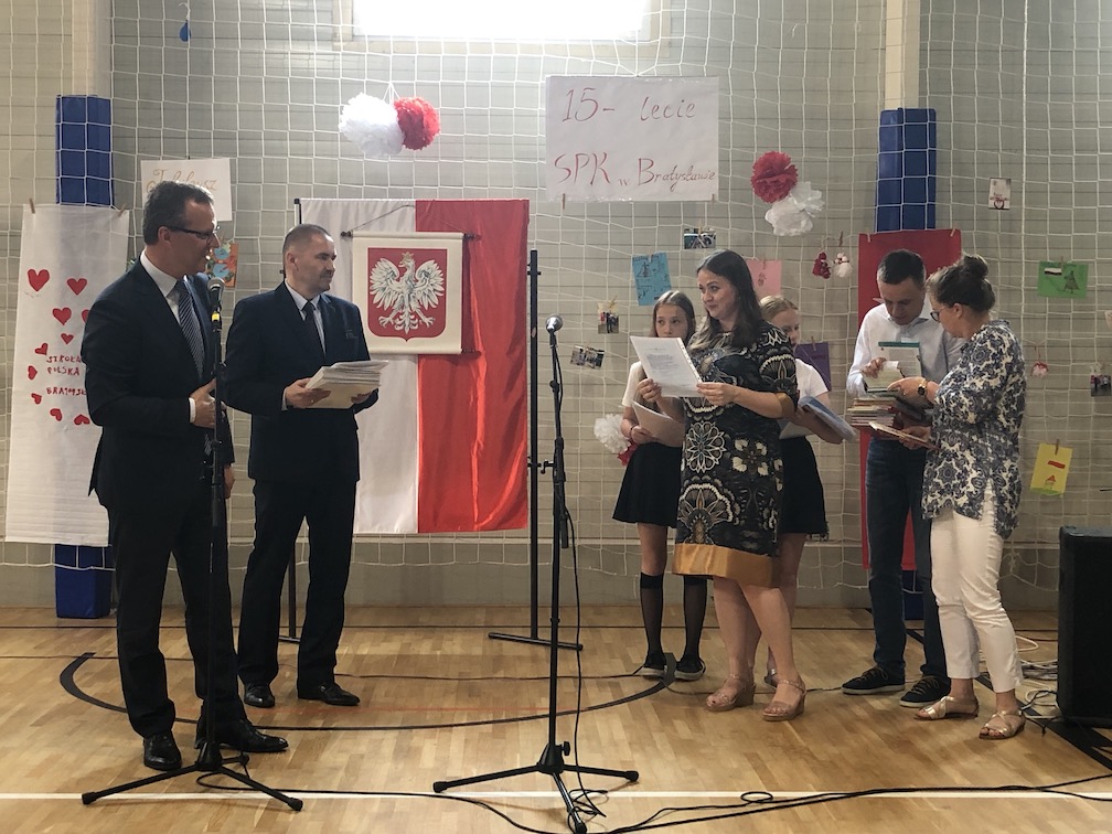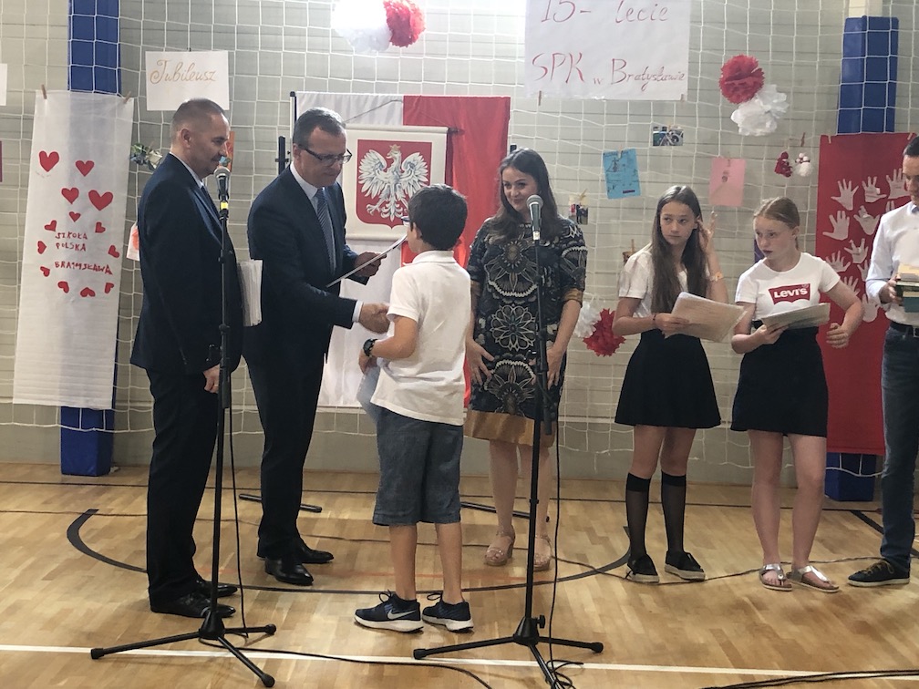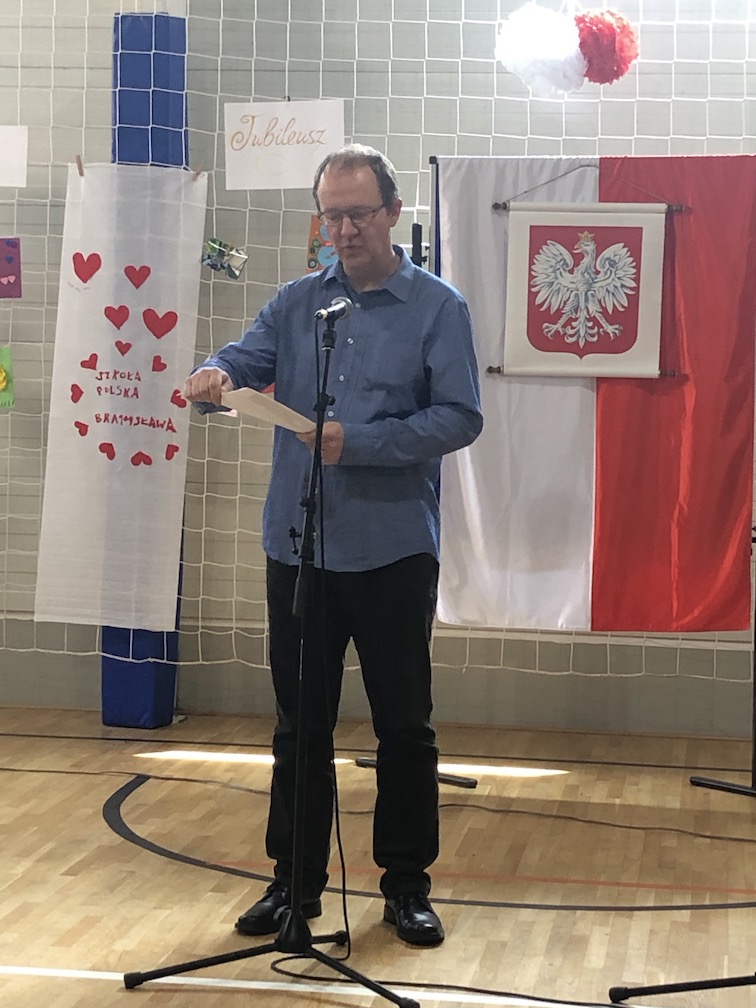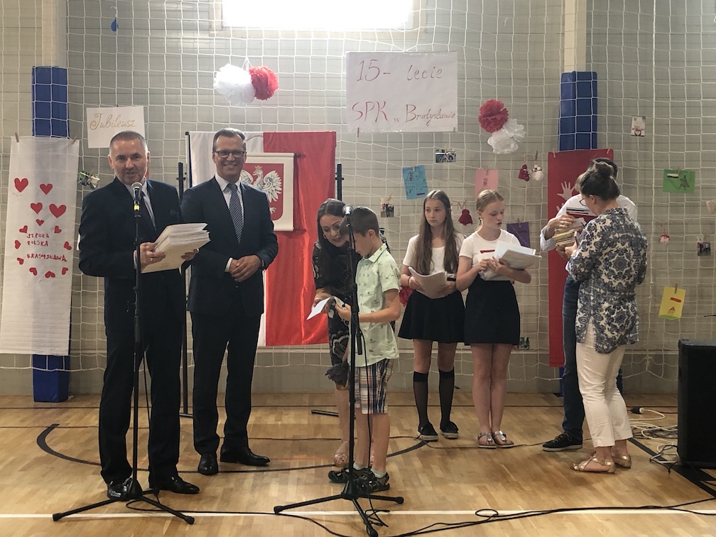 Parafrazując słowa znanej piosenki – 15 lat minęło jak jeden dzień i Szkolny Punkt Konsultacyjny przy Ambasadzie RP w Bratysławie doczekał się małego jubileuszu. 22 czerwca 2019 roku odbyły się uroczyste obchody 15-lecia naszej placówki. Na tak wielkim wydarzeniu nie mogło zabraknąć dostojnych gości. Swoją obecnością zaszczycili nas Ambasador RP na Słowacji Krzysztof Strzałka, Konsul RP na Słowacji Stanisław Kargul, wicedyrektorka Instytutu Polskiego w Bratysławie Monika Olech, przedstawiciele Polonii: prezes Klubu Polskiego Środkowe Poważe pan Zbigniew Podleśny oraz pan Marek Sobek i pani Ilona Wikieł, przedstawicielka zaprzyjaźnionej Szkoły Bułgarskiej im. Christa Boteva w Bratysławie Daniela Dojmová, przedstawiciel Wyższej Szkoły Pedagogicznej Pilgrim Schule w Wiedniu Michael Holzwieser oraz obecni i byli uczniowie wraz z rodzicami.