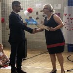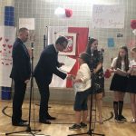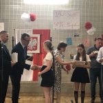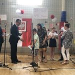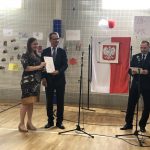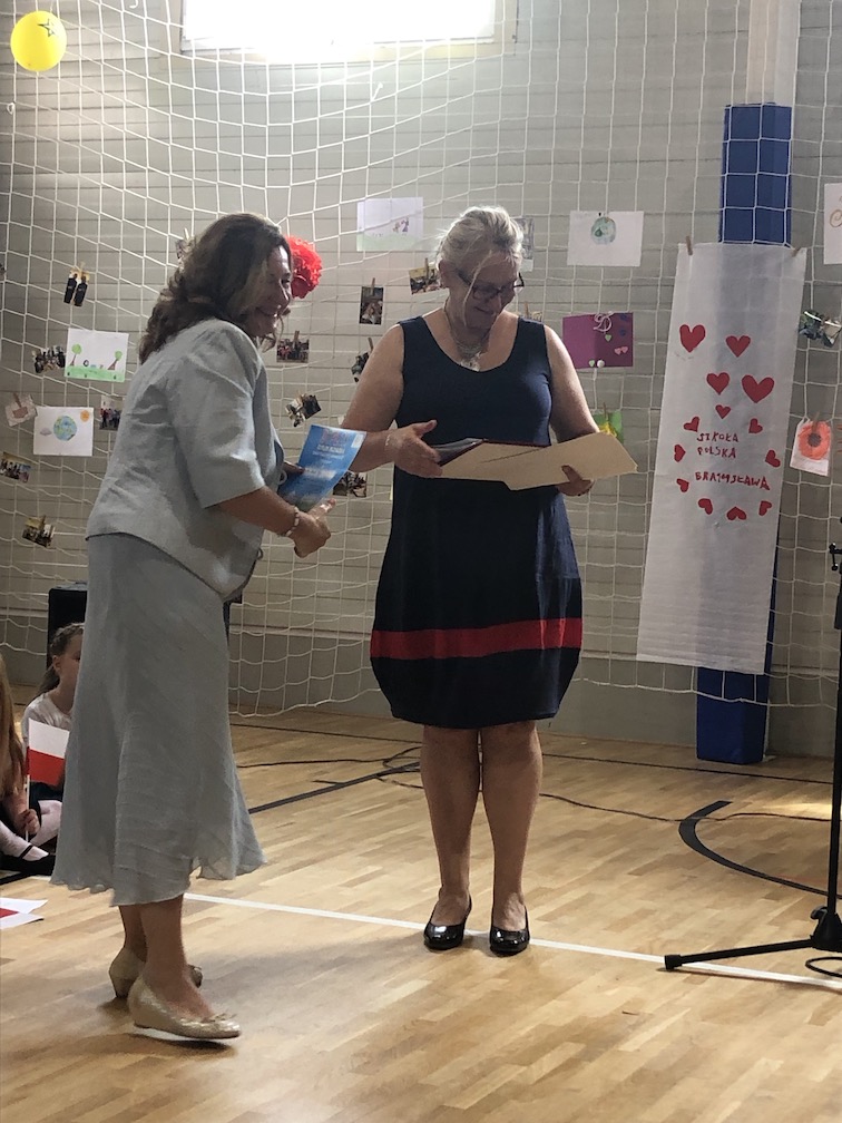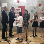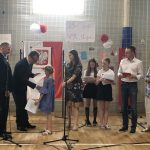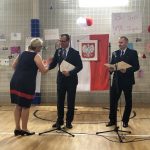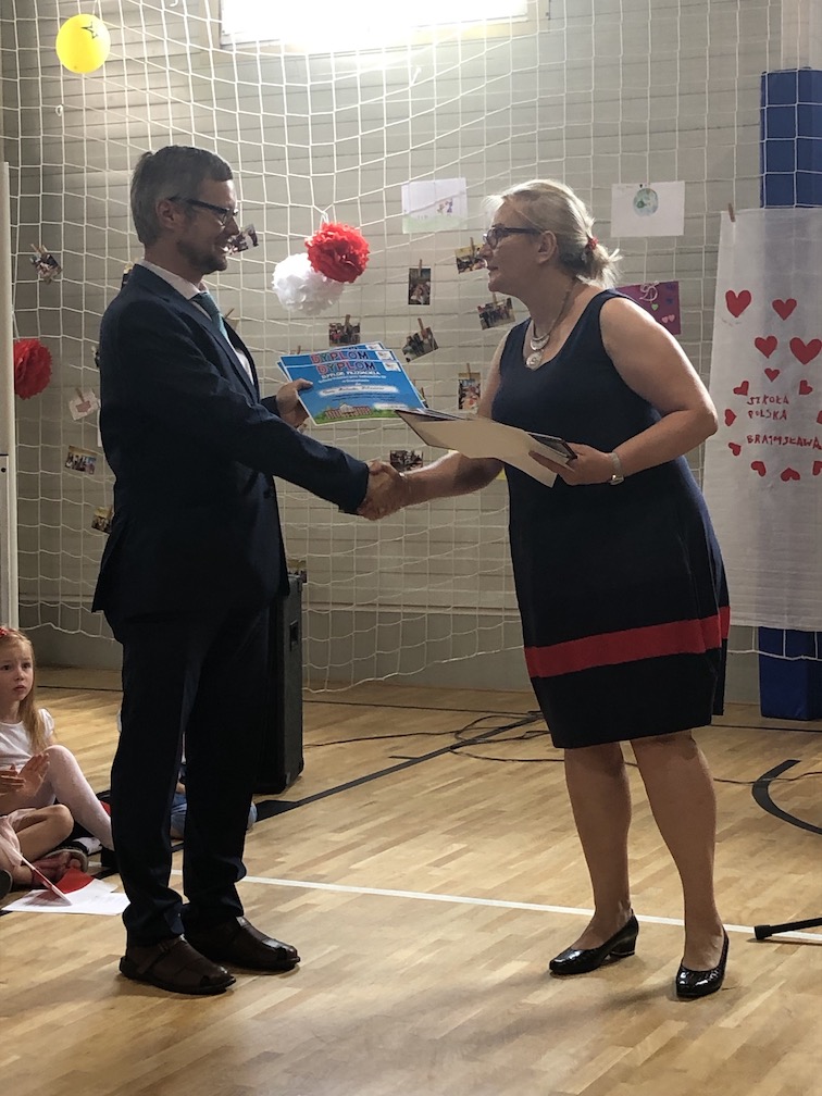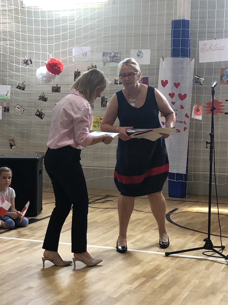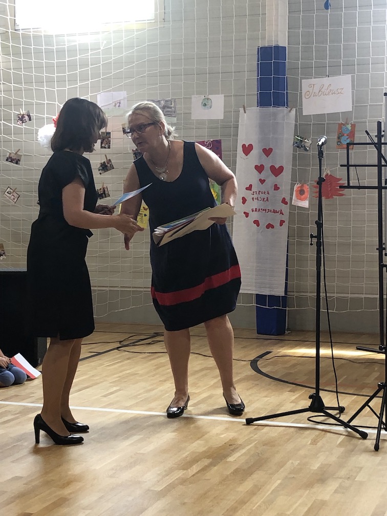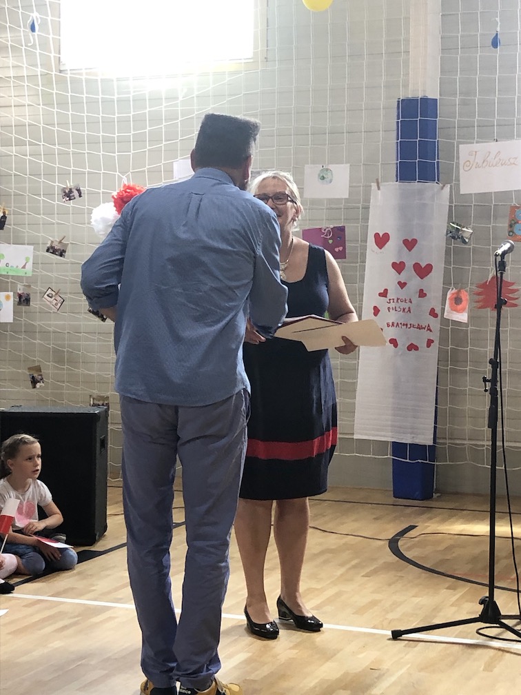 Po części artystycznej nastąpiło uroczyste wręczenie przez pana ambasadora i pana konsula dyplomów uznania uczniom, nauczycielom i przyjaciołom naszej szkoły oraz wręczenie świadectw szkolnych i nagród ufundowanych przez sponsorów. Oklaskom nie było końca.
