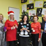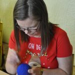 Głównym punktem programu były zajęcia plastyczne prowadzone przez trzy wspaniałe artystki: Agnieszkę Chrzanowską-Małys, Ewę Pliszczyńską i Urszulę Przybylską. Pani Agnieszka, kierująca na co dzień autorską pracownią artystyczną Studio ACM w Gliwicach, uczyła obecnych, na czym polega filcowanie na sucho i co można wyczarować dzięki tej technice na bombkach choinkowych. Gdy rozdano materiały do pracy, igły poszły w ruch, a uczestnicy warsztatów pracowali w takim skupieniu, że słychać było tylko szelest przebijanych kul.