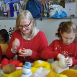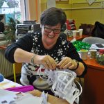 Nasza ostatnia artystka, pani Urszula, pochodząca z Łasku nauczycielka realizująca się twórczo pod szyldem Aniołki Ulki Szpulki, która pasją do prac ręcznych zaraziła już niejedno pokolenie uczniów, zaprezentowała, jak można wykorzystać technikę papieroplastyki do ozdobienia własnego domu. Przy jej stanowisku co chwilę pojawiały się przepiękne anioły i gwiazdy, którym towarzyszyły szerokie uśmiechy uczestników naszych warsztatów.