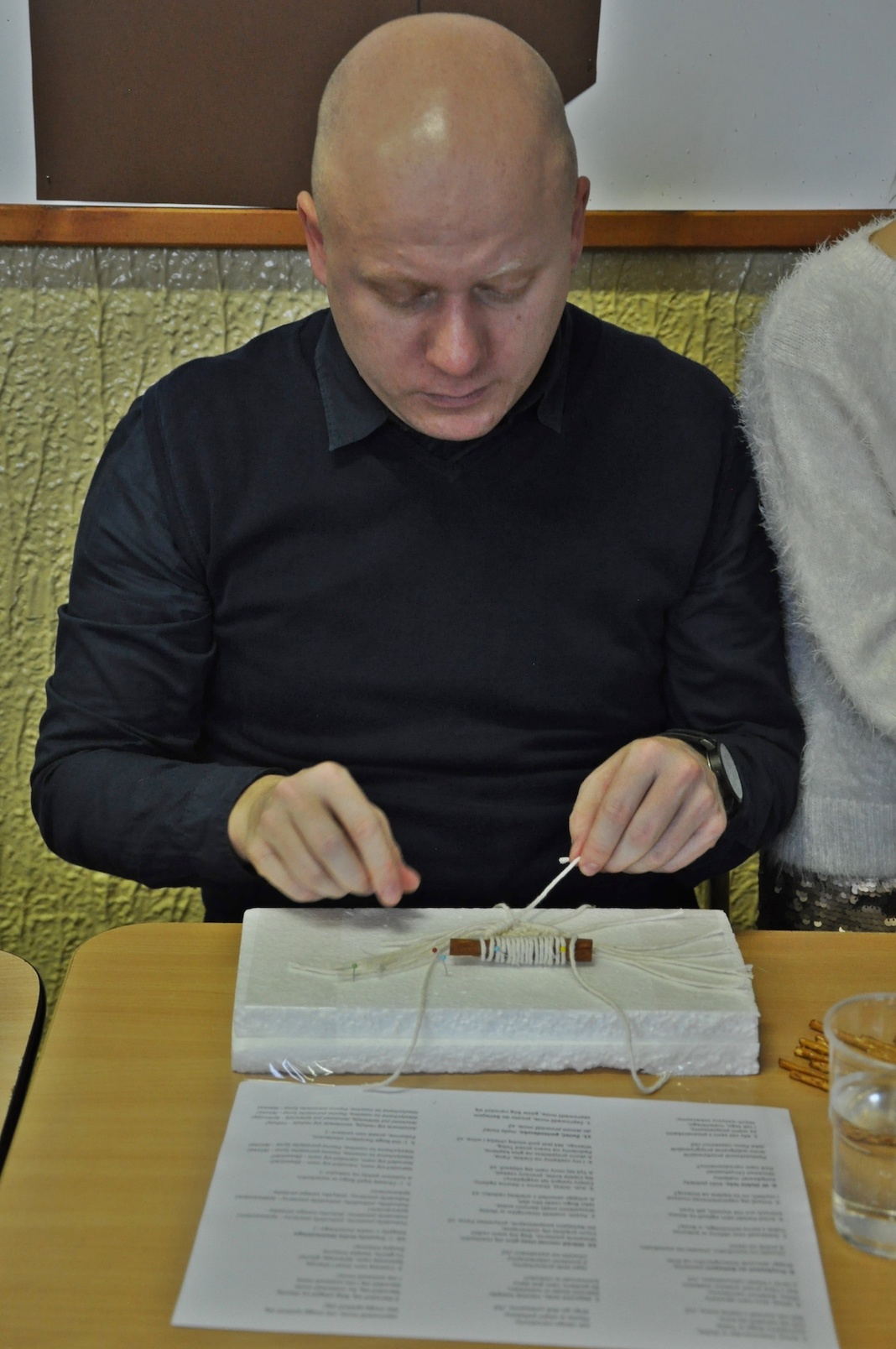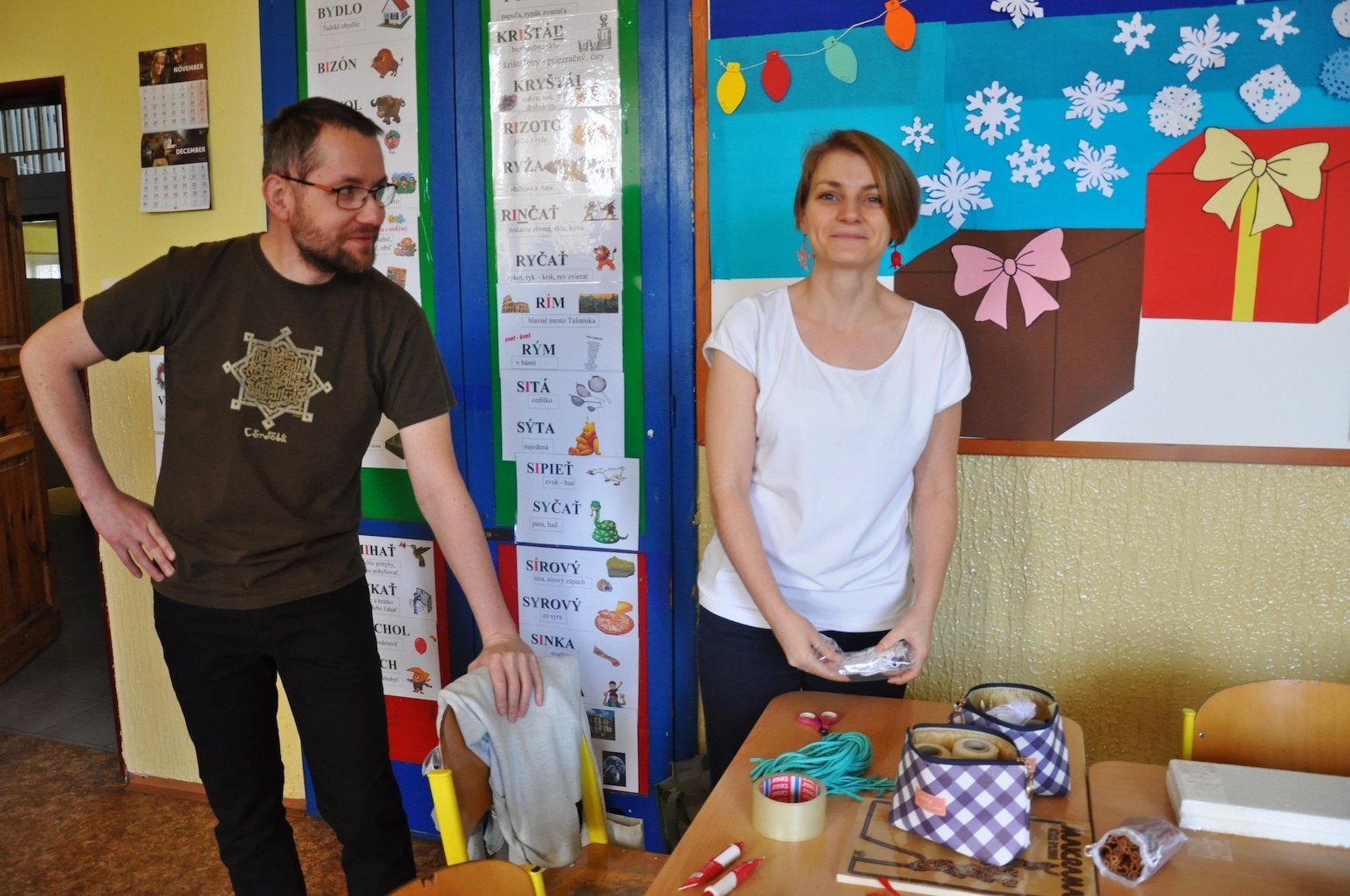 Z kolei pani Ewa, nasza rodaczka z Bratysławy, uchyliła rąbka tajemnicy i podzieliła się z nami wiedzą na temat techniki mikromakramy, za pomocą której tworzy przepiękną biżuterię pod marką EwiMacrame. Uczestnikom warsztatów pokazała, jak można posłużyć się nią do stworzenia oryginalnych dekoracji świątecznych. Chętnych do misternego zaplatania sznurków było tak wielu, że nasz gość ledwo nadążał z pomocą. Na szczęście pani Ewa miała ze sobą pomocnika, pana Wojtka Koszewskiego, i każdemu chętnemu udało się pod ich czujnym okiem wyczarować jakąś ozdobę.