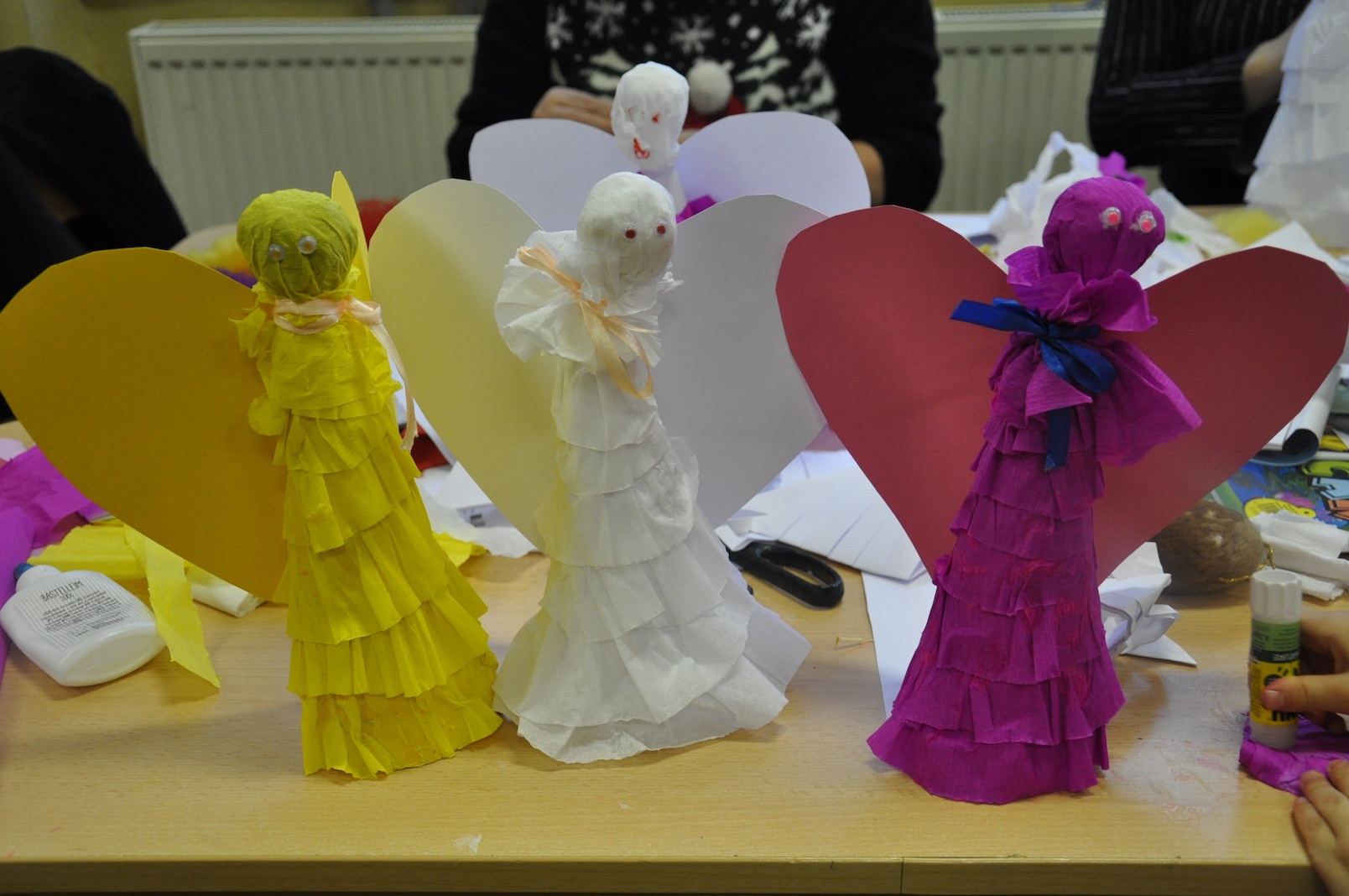 Nasza ostatnia artystka, pani Urszula, pochodząca z Łasku nauczycielka realizująca się twórczo pod szyldem Aniołki Ulki Szpulki, która pasją do prac ręcznych zaraziła już niejedno pokolenie uczniów, zaprezentowała, jak można wykorzystać technikę papieroplastyki do ozdobienia własnego domu. Przy jej stanowisku co chwilę pojawiały się przepiękne anioły i gwiazdy, którym towarzyszyły szerokie uśmiechy uczestników naszych warsztatów.