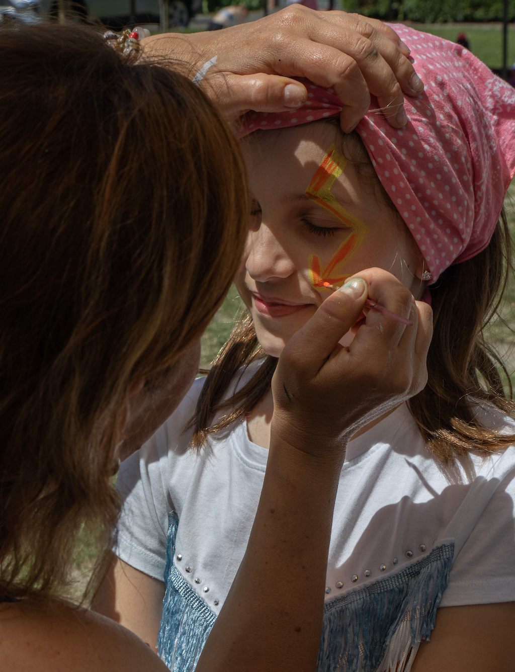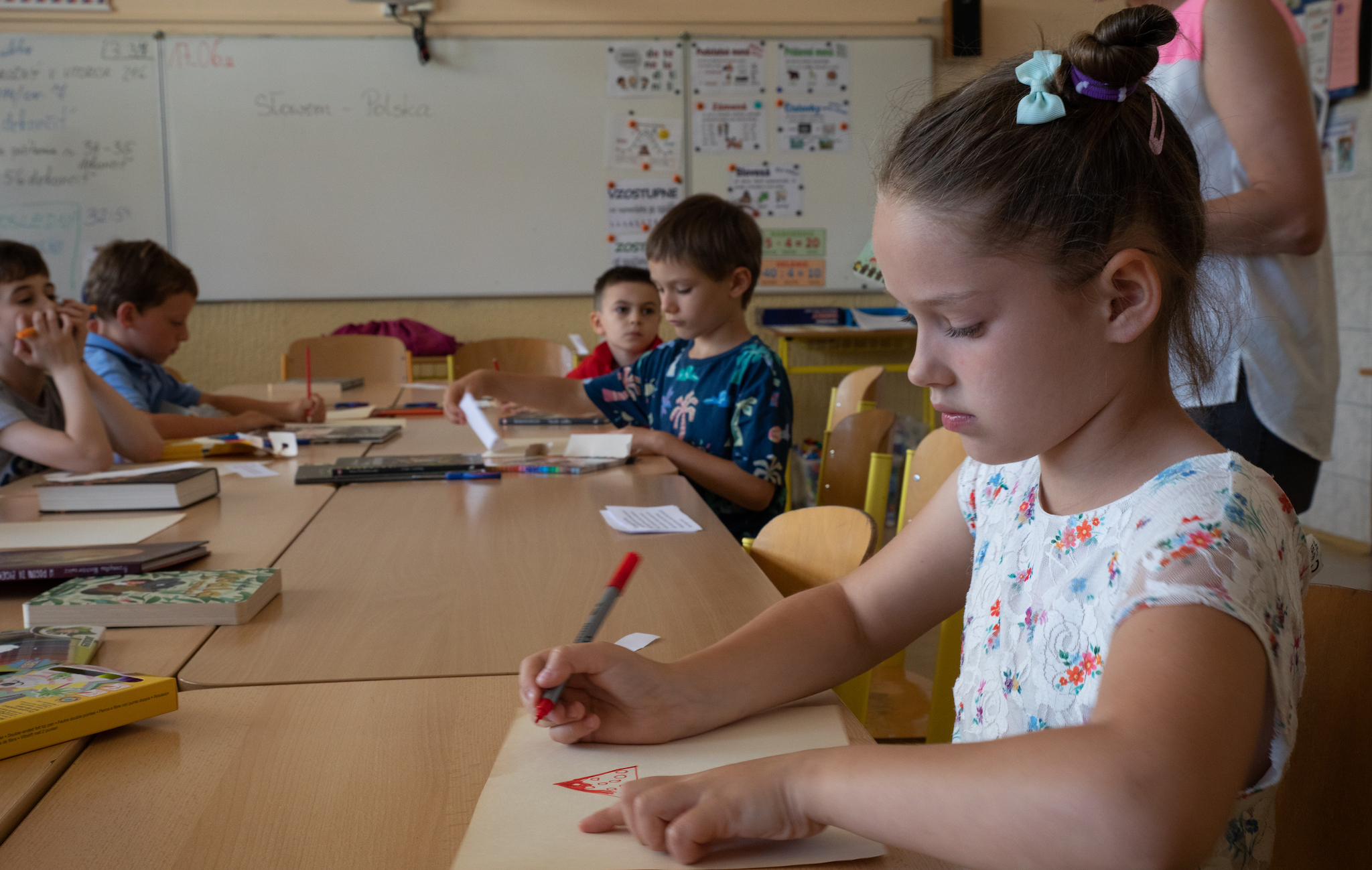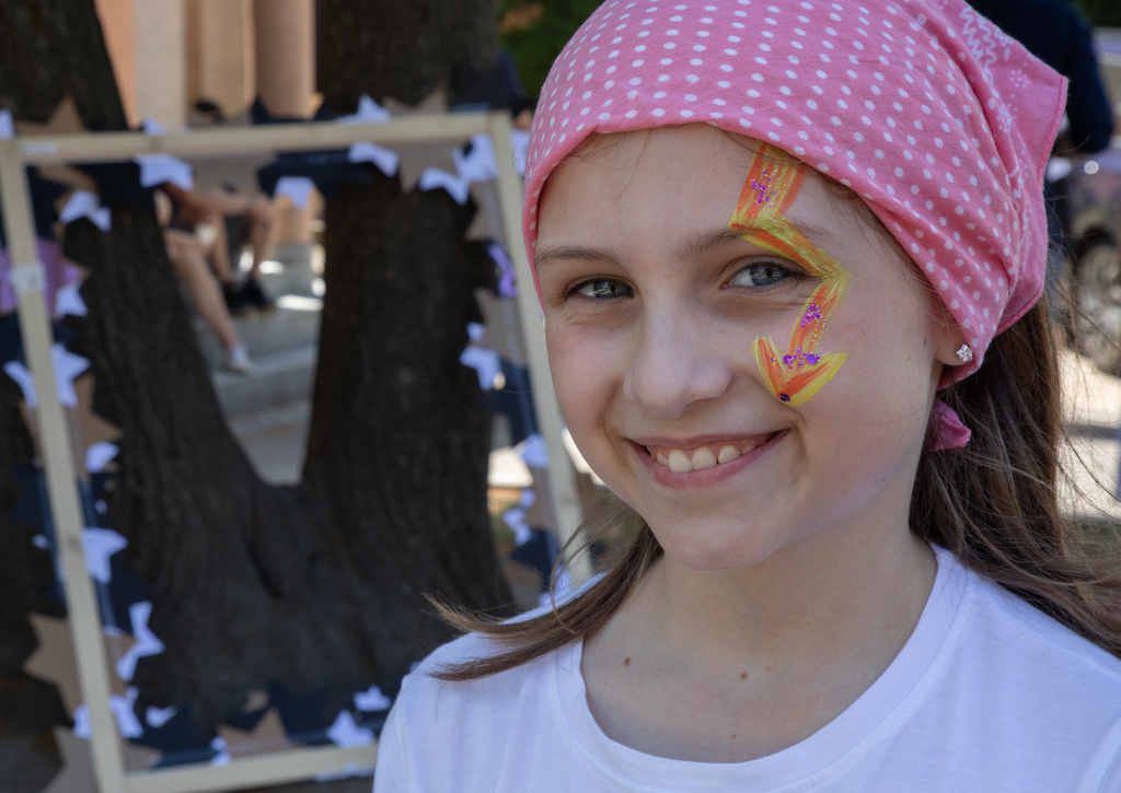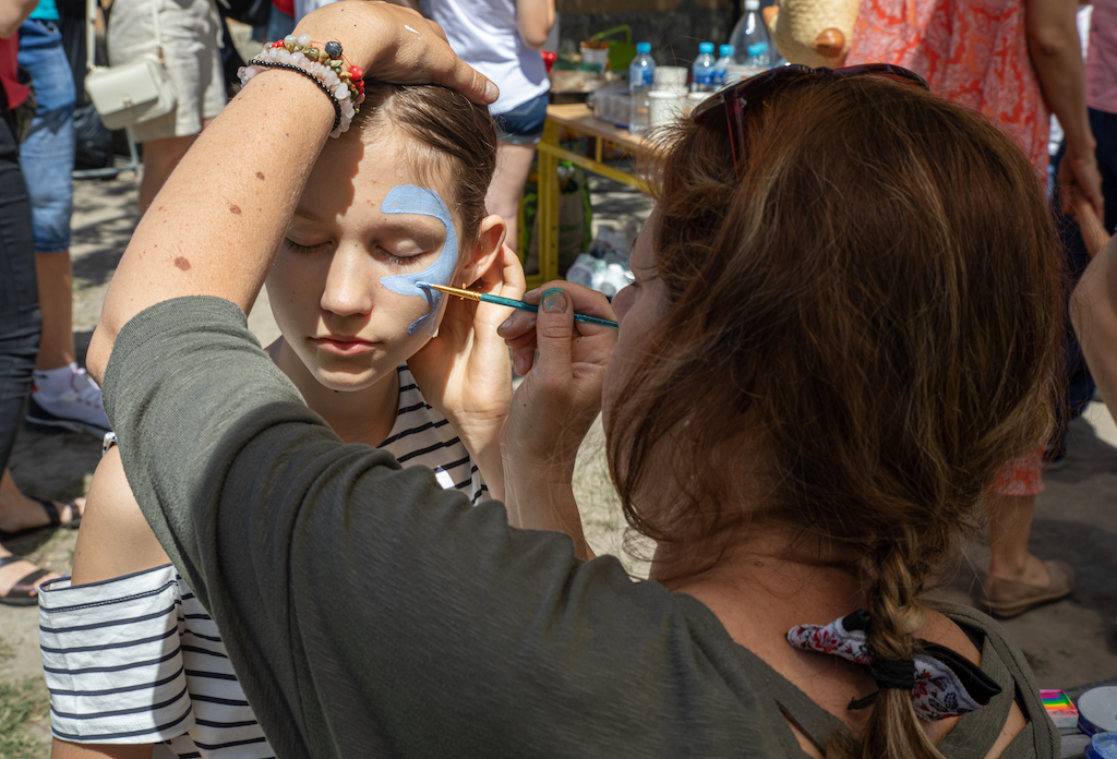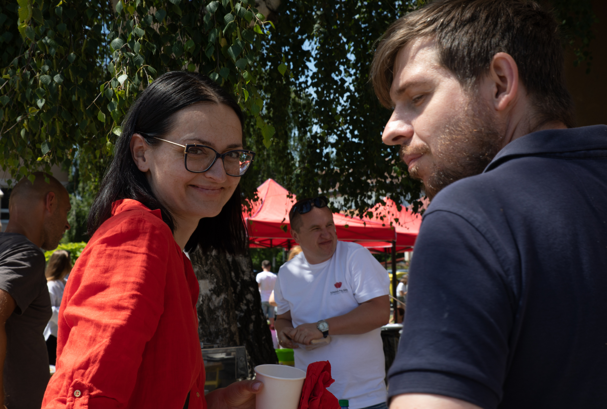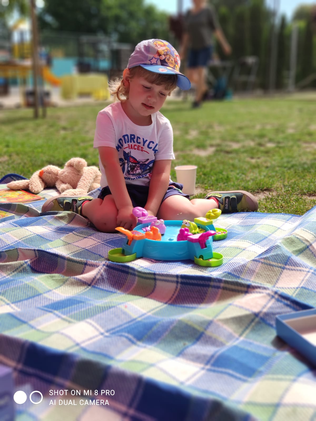 Program wydarzenia był niezwykle bogaty. Uczestnicy mogli odetchnąć z książką w strefie chilloutu, sfotografować się w fotobudce (za aparatem stała nieoceniona Agnieszka Stefańska), wziąć udział w poświęconych krasnoludkom zawodach sportowych, przygotowanych przez pana Krzysztofa Grucę wraz z żoną Joanną, zagrać na boisku w piłkę lub po prostu posiedzieć przy kawie i ciastku. Na dzieci czekały: specjalistka od malowania twarzy, zawodowa tancerka, która przygotowała warsztaty taneczne, oraz plastyczka, która odkryła przed najmłodszymi tajniki zawodu ilustratora. Oczywiście nie mogło zabraknąć elementów edukacyjnych. Postać Marii Konopnickiej przybliżył wszystkim spektakl napisany i wyreżyserowany przez panią Marzannę Danek-Hnelozub, pt. „Konopnicka – portret bez ram”, w którym wystąpili nauczyciele, uczniowie i rodzice, oraz wystawa prezentująca życie i twórczość pisarki, przygotowana przez uczniów pod kierunkiem pani Anny Kasperskiej. Oprócz plakatów poświęconych Konopnickiej, uczestnicy pikniku mogli też zapoznać się z pracami uczniów, przygotowanymi na znak protestu wobec rosyjskiej agresji na Ukrainę. Temat solidarności z Ukrainą przewijał się zresztą jeszcze w kilku miejscach. W strefie chilloutu dostępna była twórczość pisarzy i poetów ukraińskich, a podczas całego pikniku jego uczestnicy mieli możliwość wpłacenia datku na rzecz Ukrainy – zbiórkę zorganizowano we współpracy z Fundacją Integra.