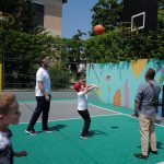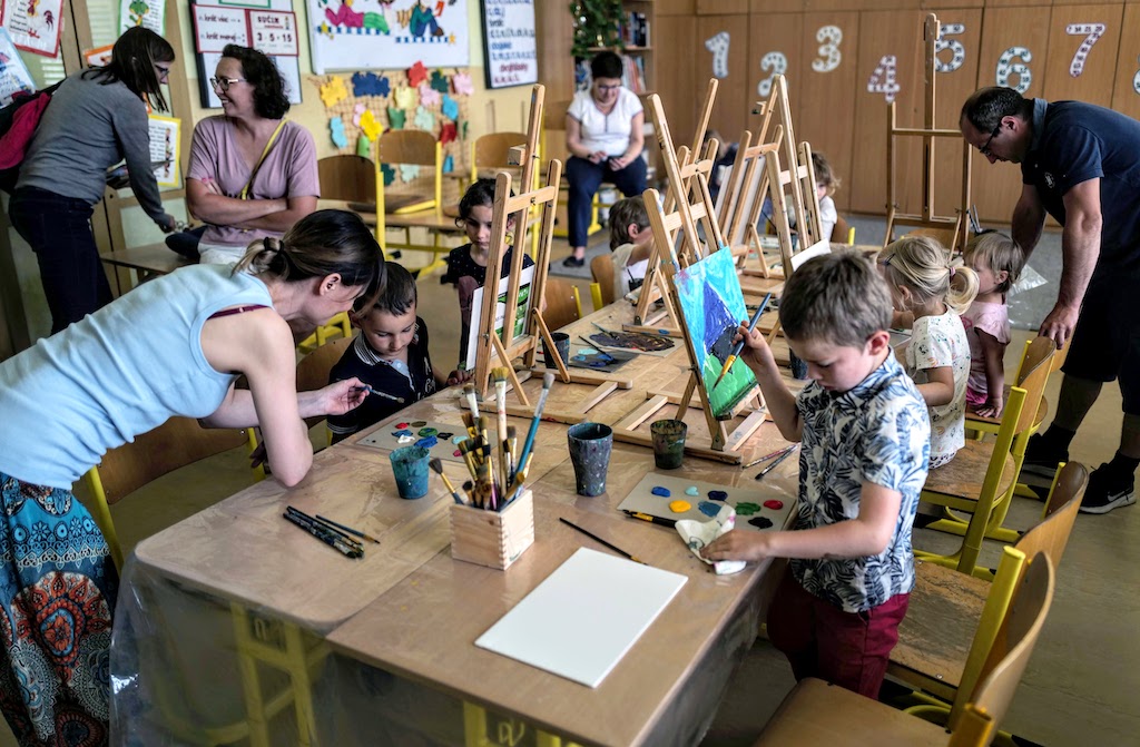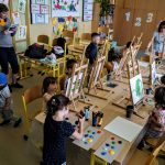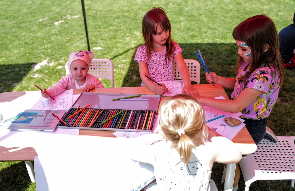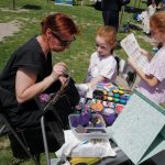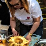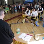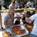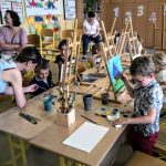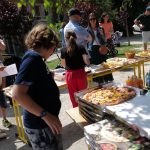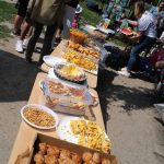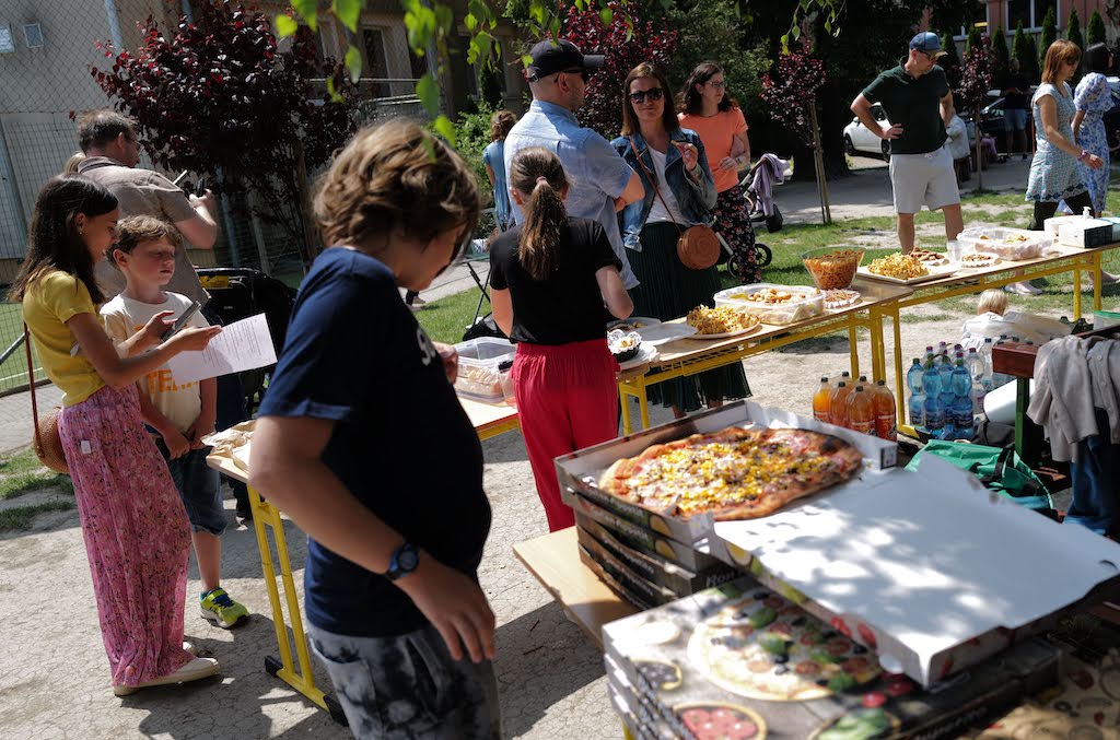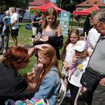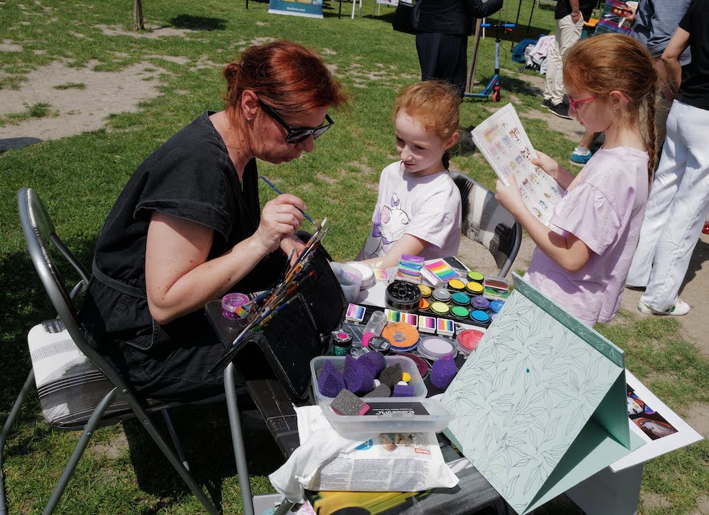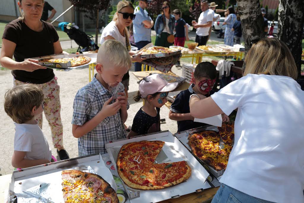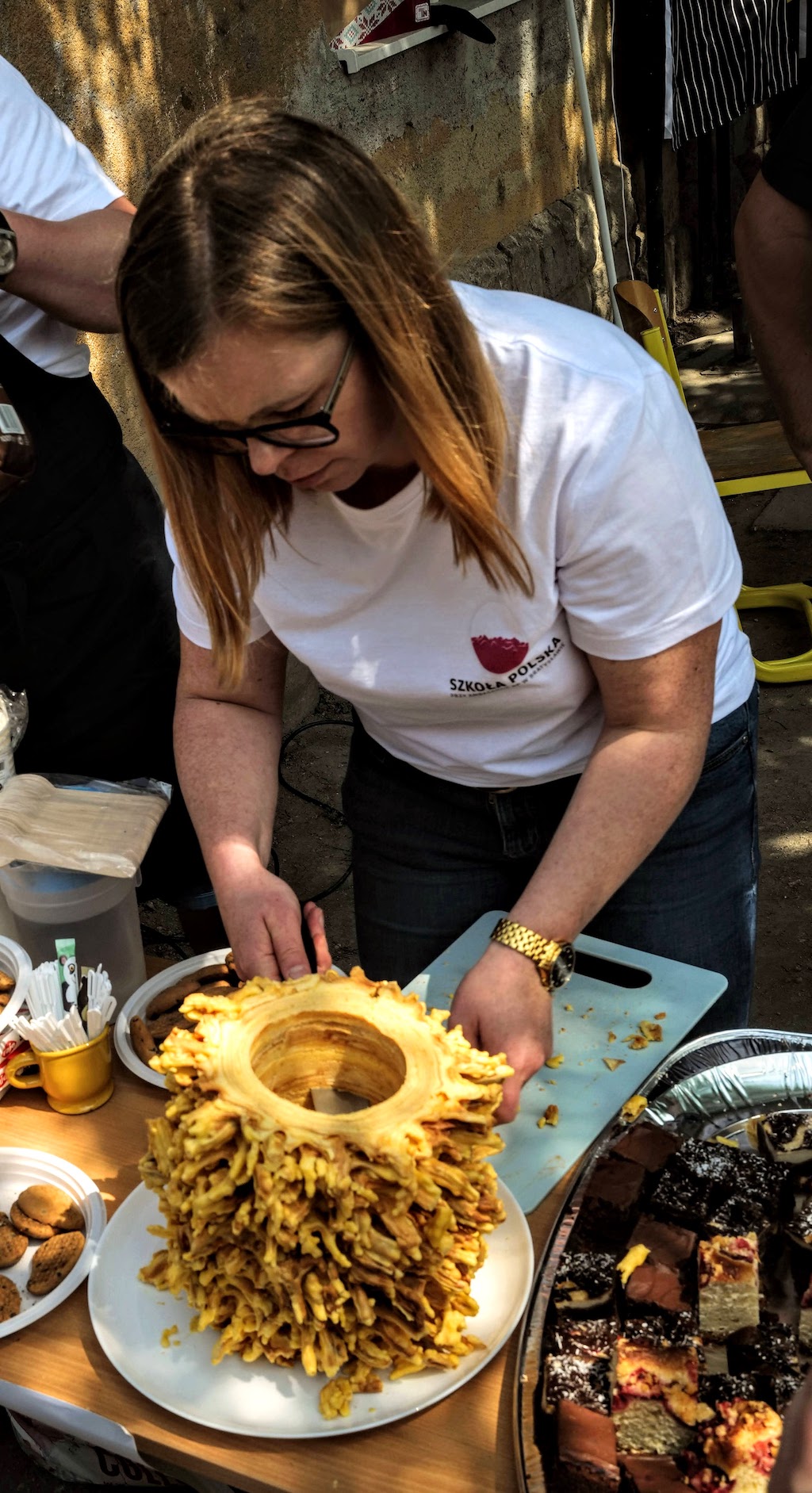 Następnie pełne wrażeń dzieci z Klubiku Małego Polaka i uczniowie szkoły udali się na warsztaty. Najmłodsi uczestnicy pikniku brali udział w warsztatach plastycznych prowadzonych przez Agnieszkę Chrzanowską-Małys. Dzieci z klas I–III wraz z rodzicami uczestniczyły w warsztatach etnologicznych, które przygotowała Monika Michaluk. Uczniowie klas IV–VIII oraz LO brali udział w warsztatach dziennikarskich prowadzonych przez Małgorzatę Wojcieszyńską. Dla pozostałych uczestników pikniku w budynku szkoły wyświetlana była prezentacja multimedialna poświęcona nowemu patronowi, przygotowana przez księdza Krystiana Piotrowskiego. Po atrakcyjnych zajęciach nadszedł czas na odpoczynek i posiłek. Rodzice pod kierunkiem Klaudii Bochen przygotowali obfity bufet ze smakołykami, owocami, ciastami, a także wyczekiwaną przez dzieci pizzą oraz gulaszem gotowanym w kotle. Tuż obok, w zacienionym miejscu pod drzewami, najmłodsi słuchali bajek czytanych przez panią Bożenę Miczek-Majkę oraz mogli kolorować kolorowanki ufundowane przez firmę Readmio. Nieopodal była możliwość zrobienia sobie zdjęć w fotobudce, a także dla chętnych – punkt malowania twarzy prowadzony przez panią Hanę Uhrinovą. Na boisku uczniowie mogli uczestniczyć w zabawach i grach sportowych prowadzonych przez pana dyrektora i księdza Krystiana. Dzieci chętnie korzystały z tych atrakcji.
