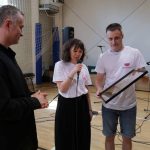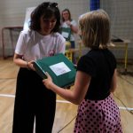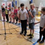 Jednym z ostatnich punktów naszego pikniku był pokaz szkolnych talentów. Gdy wszystkie chętne dzieci zaprezentowały swoje talenty muzyczne, taneczne i recytatorskie, nastąpiło ogłoszenie wyników konkursów: plastycznego i graficznego, poświęconych Janowi Pawłowi II.