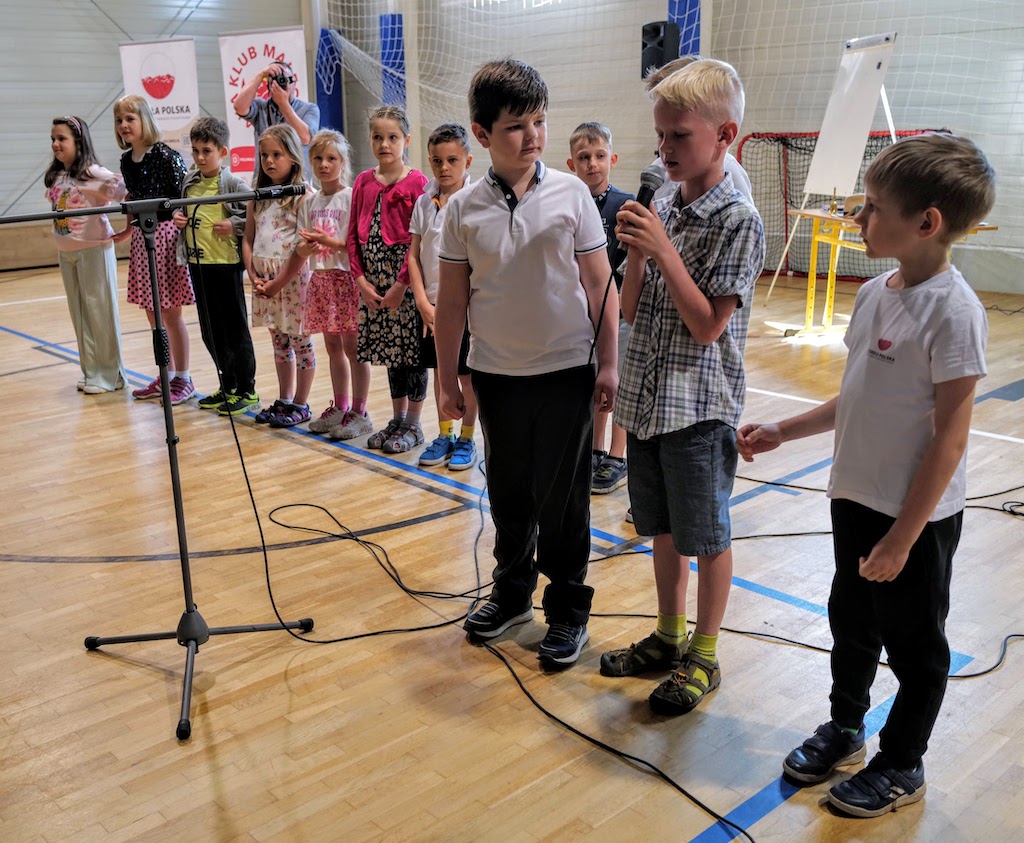 Następnym punktem programu był występ dzieci z Klubu Małego Polaka. Zaśpiewały one piosenkę dla mamy i taty z okazji ich święta. Wszystkie były wpatrzone w swoją panią, Natalię Konicz-Hamadę, która śpiewała razem z nimi. Gdy szczęśliwe maluchy rozdały po występie laurki swoim rodzicom, krótki program artystyczny przygotowany wraz z nauczycielką edukacji wczesnoszkolnej panią Bożeną Miczek-Majką zaprezentowali uczniowie klas I-III. Dzieci z wielkim zaangażowaniem wyrecytowały wiersze i zaśpiewały piosenkę, która wzruszyła wszystkich obecnych. Akompaniowali im szkolni ojcowie: Marián Hamada na klawiszach oraz Piotr Michna na klarnecie.
