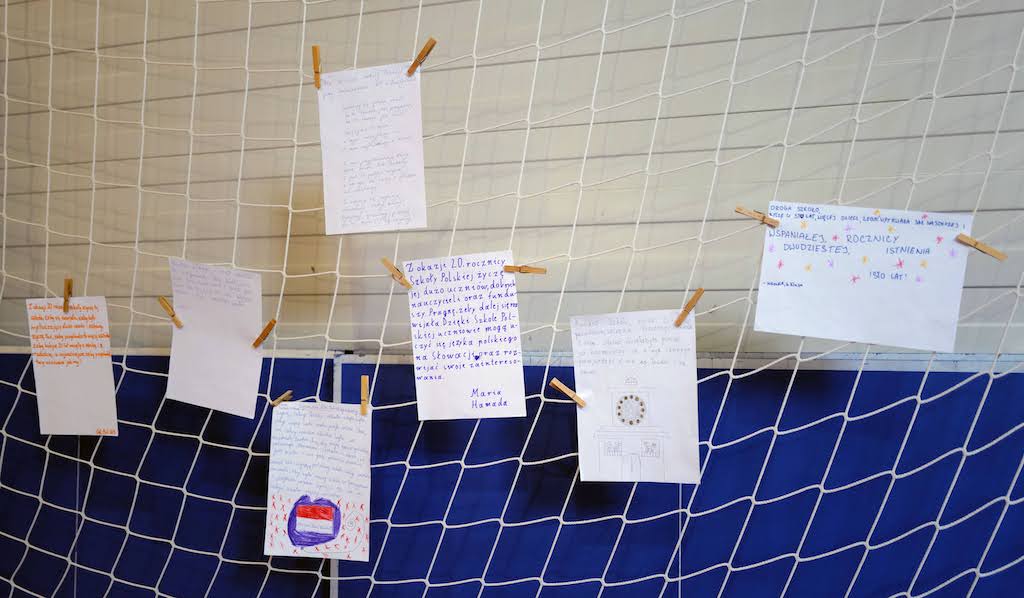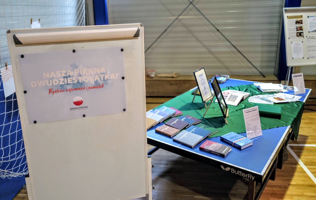 Po zakończeniu części artystycznej wszyscy zebrani mogli obejrzeć przygotowaną specjalnie z okazji jubileuszu 20-lecia istnienia szkoły wystawę. Znalazły się na niej wspomnienia pierwszej dyrektor placówki, pani Ireny Malec-Bilińskiej, wspomnienia absolwentki Sylwii Subiak-Wtorekovej dojeżdżającej do szkoły przez cztery lata aż z Żyliny, listy gratulacyjne, archiwalne numery „Monitora Polonijnego”, w których ukazywały się artykuły o szkole, archiwalne numery gazetki szkolnej „Szkoleś” wydawanej przez uczniów, kroniki szkolne, albumy ze zdjęciami oraz życzenia dla naszej „dwudziestolatki” od uczniów. Zanim wszyscy opuścili salę, uczennice klas starszych rozdały obecnym jubileuszowy numer gazetki „Szkoleś”, zawierający historię szkoły w pigułce oraz kalendarz na rok szkolny 2023/2024, a opracowany przez Natalię Konicz-Hamadę.