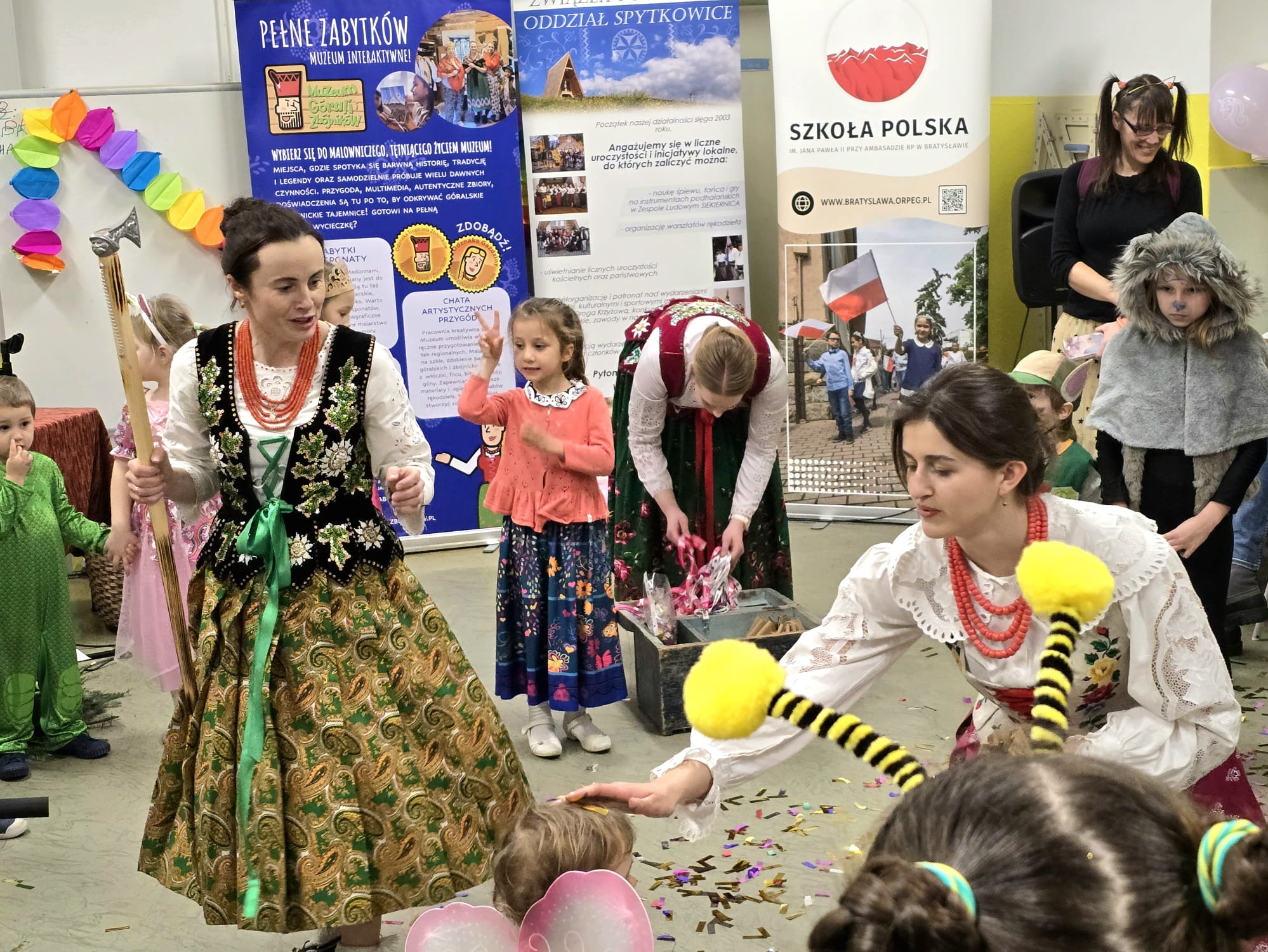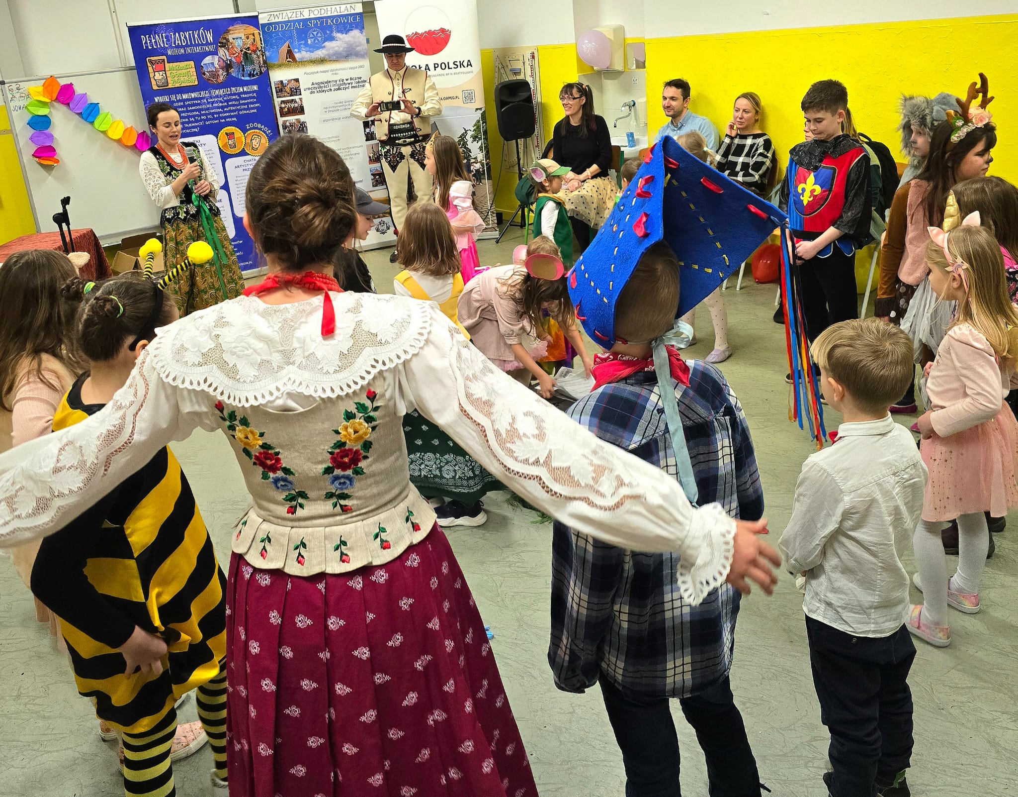 W sobotę 8.02.2025 r odbył się w naszej szkole bal karnawałowy. Do wspólnej zabawy wraz z Klub Polski Bratyslawa zaprosiliśmy górali z Polski. We współpracy z Muzeum Górali i Zbójników, Związek Podhalan oddział Skawa, Związek Podhalan o. Spytkowice udało nam się przygotować udany wieczór dla najmłodszych Polonusów. Na balu pojawiło się ponad 40 dzieci. Byli to uczniowie naszej szkoły, maluchy z Klubu Małego Polaka, a także inne dzieci z okolic Bratysławy. Być może w przyszłości zostaną naszymi uczniami. Pierwszy krok w progach szkolnych już zrobili. Dzieci miały okazję uczyć się tańca i śpiewu góralskiego, a także poznać kulturę Skalnego Podhala poprzez ciekawe gry i zabawy o tematyce regionalnej. Na uczestników balu oprócz wesołej zabawy czekał także pyszny poczęstunek przygotowany przez rodziców. Bal trwał aż cztery godziny, a jego uczestnicy z żalem opuszczali szkołę. Pozostaje nam życzyć sobie, że spotkamy się za rok na równie udanej imprezie.