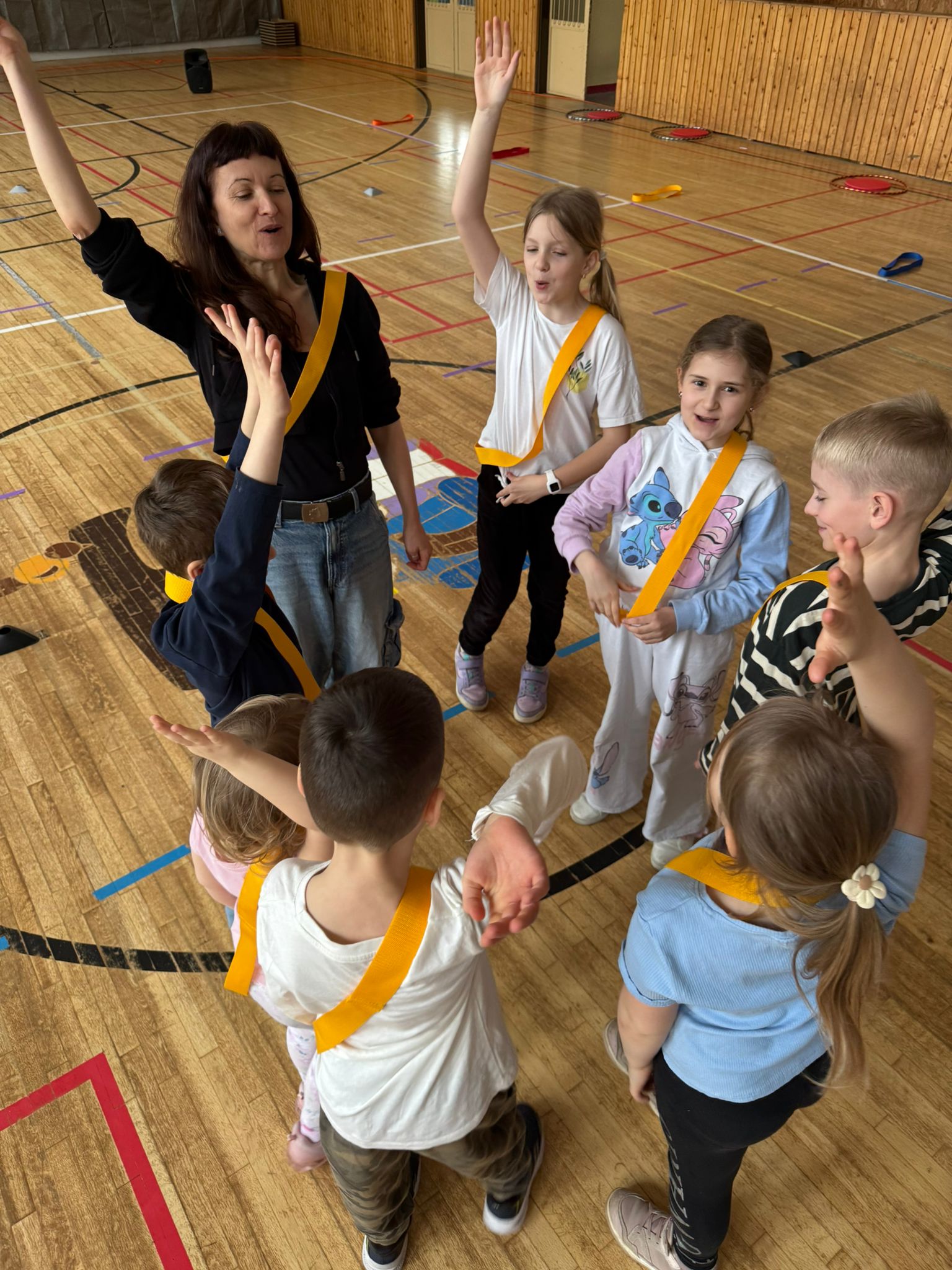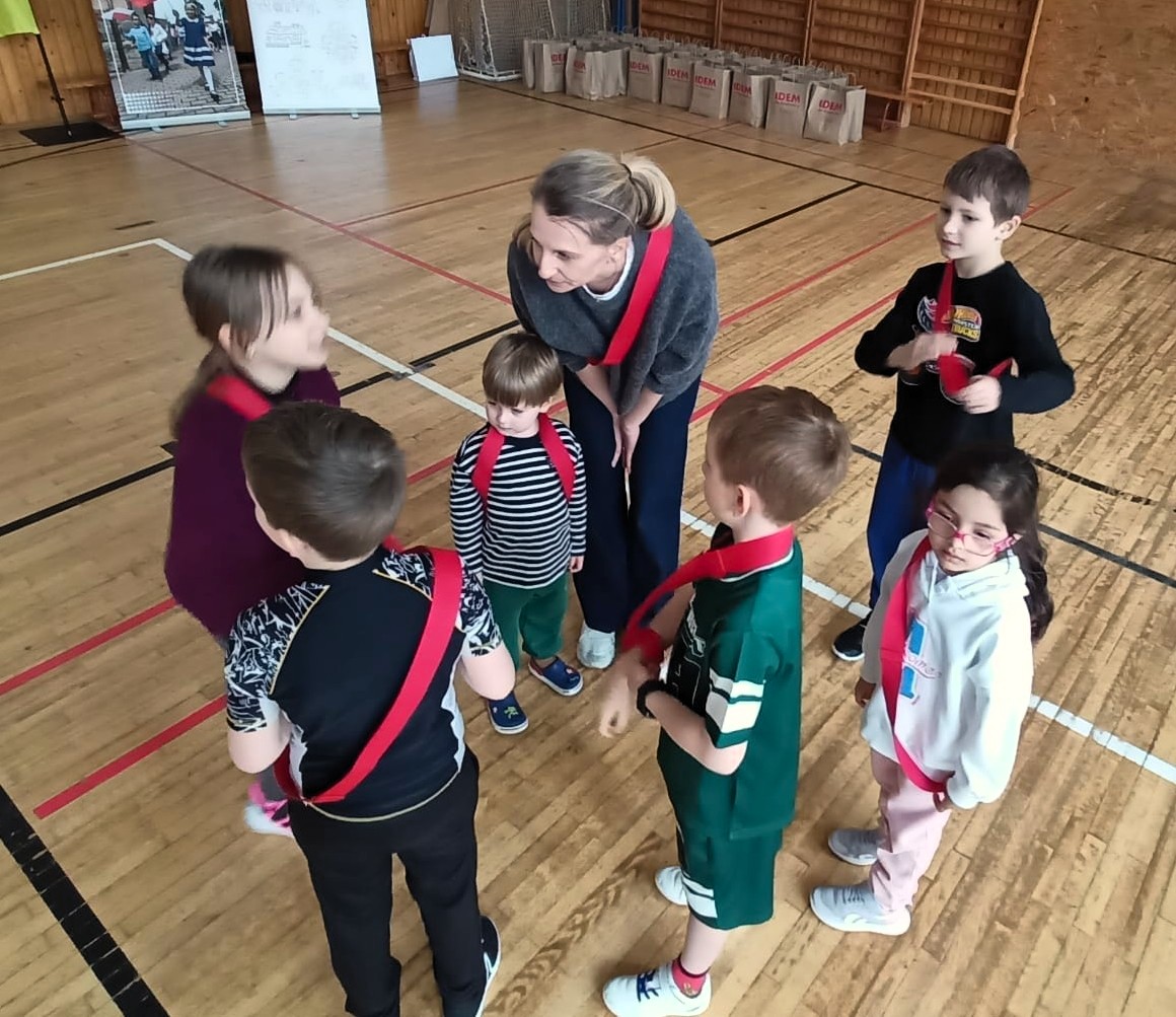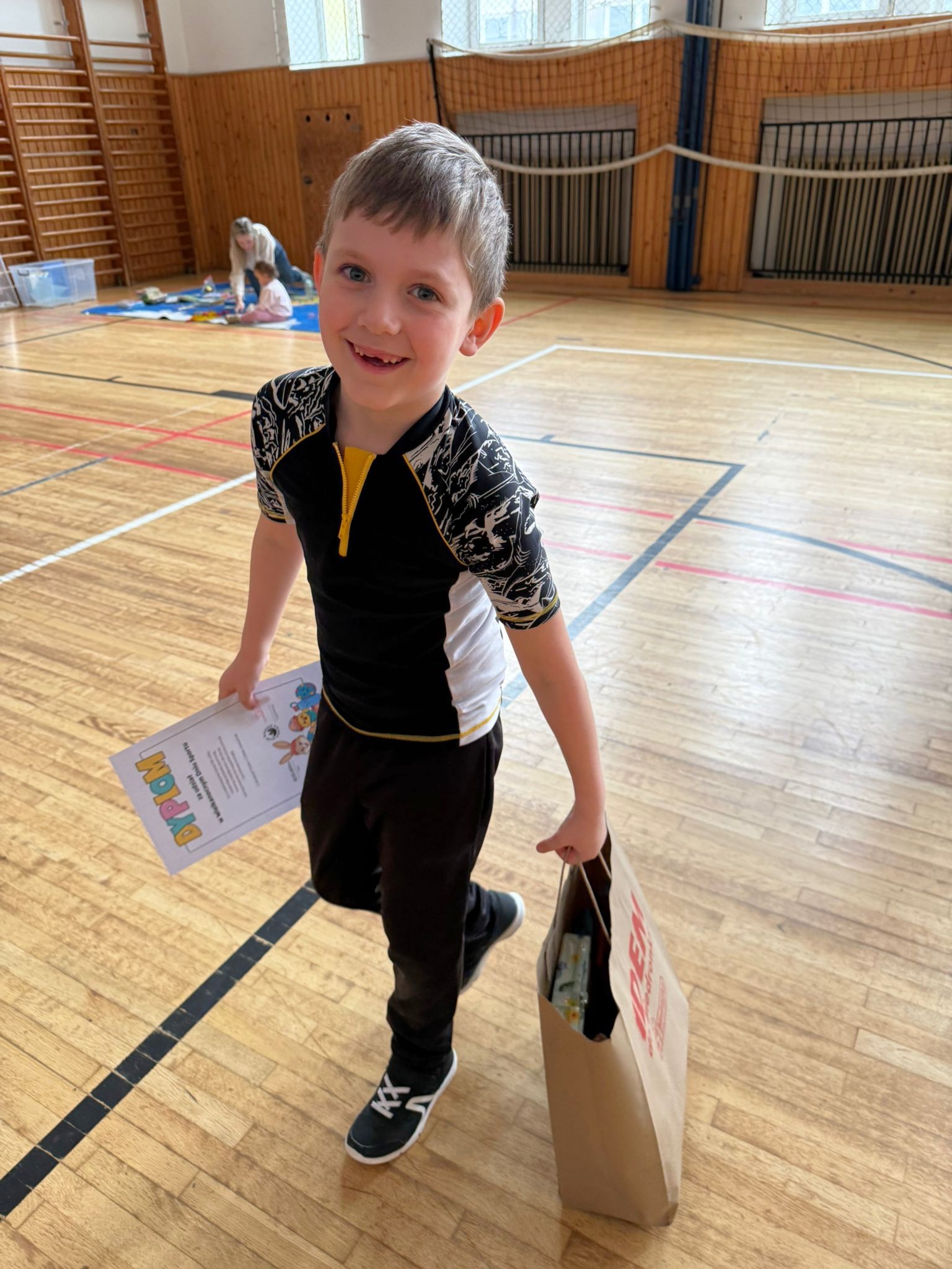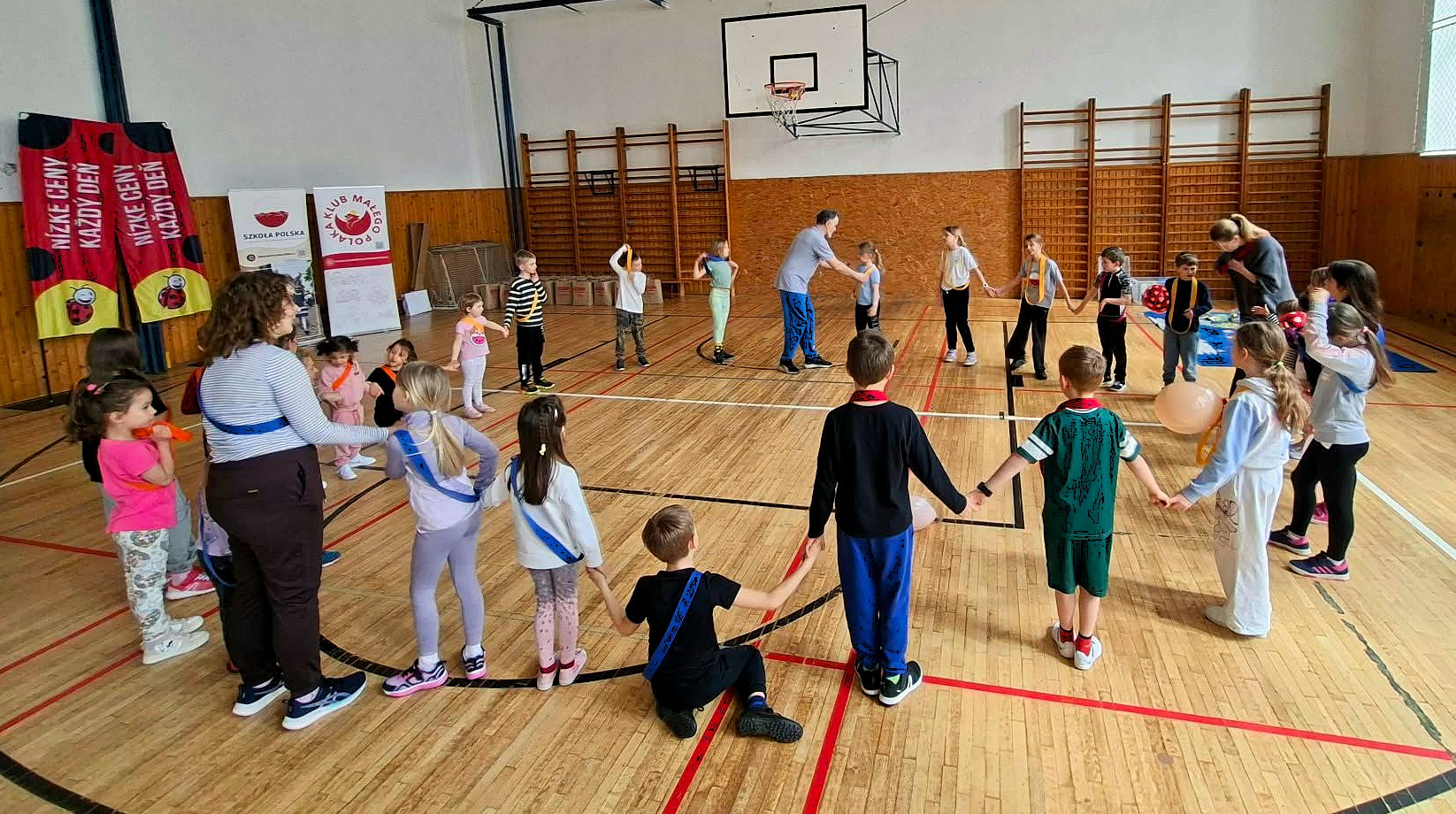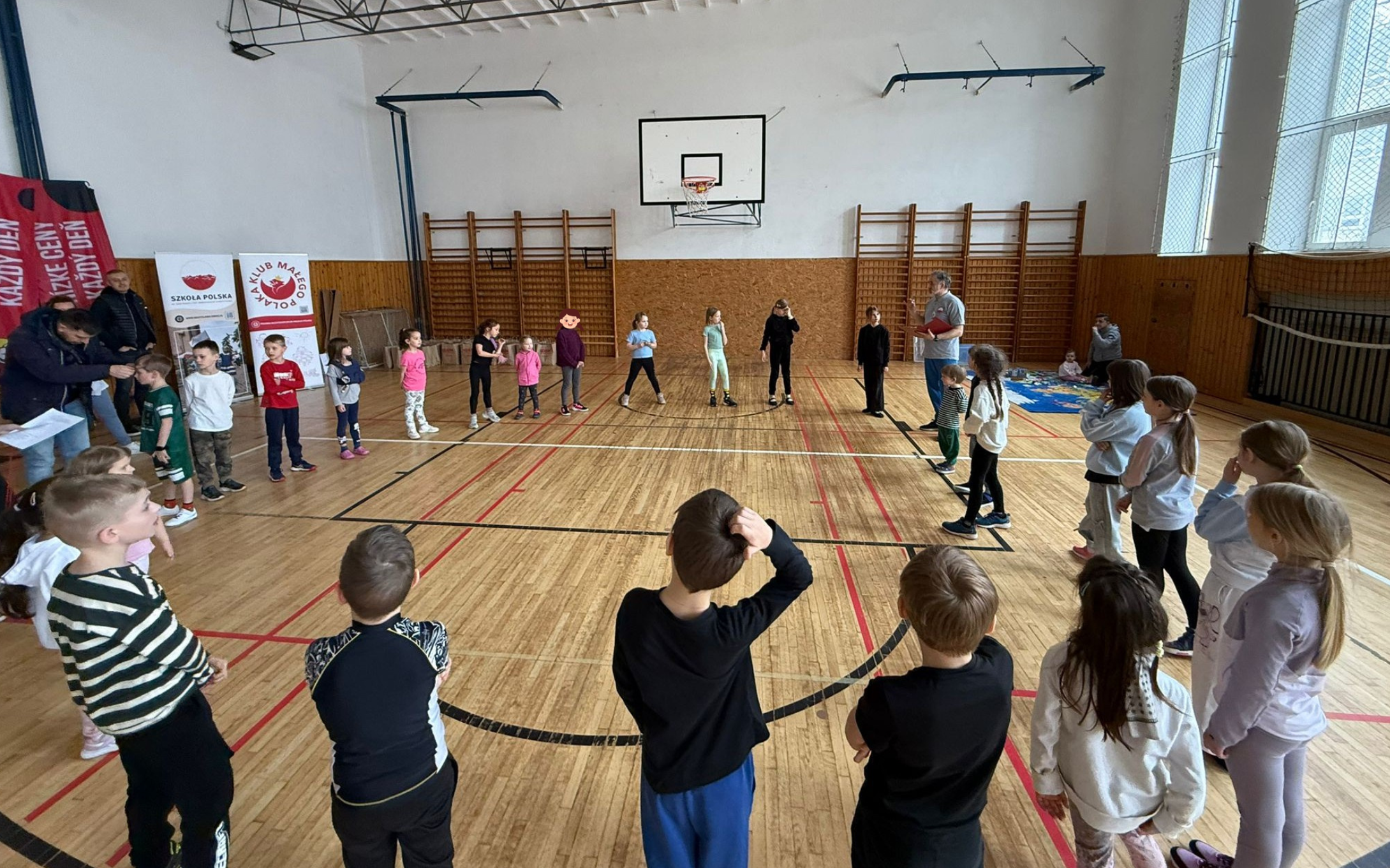 Czym byłby Wielkanocny Dzień Sportu i Kreatywności bez części sportowej? No właśnie! Dlatego również i w tym roku nasza Szkoła Polska we współpracy z zaprzyjaźnionym Klubem Małego Polaka podtrzymała trzyletnią tradycję i zorganizowała na sali gimnastycznej zabawy sportowe. Uczestniczyły w nich nasze polonijne przedszkolaki oraz uczniowie klas I–III. Tematyka zabaw łączyła w sobie zarówno motywy wielkanocne, jak i motywy górskie, dopasowane do zajęć, w których uczestniczyli tego dnia starsi uczniowie. Nad całością czuwała prowadząca Klub Małego Polaka przy wsparciu dyrektora naszej szkoły. Najważniejszą rolę odegrały jednak szkolno-Klubikowe mamy, które wzięły na siebie rolę opiekunek poszczególnych drużyn i wspaniale wspierały i integrowały naszych najmłodszych, ucząc je ducha fair play. Dzieci kończyły zabawę z niezwykle szerokimi uśmiechami na ustach, które pogłębiły tylko torby pełne słodyczy od naszego życzliwego sponsora, sieci sklepów Biedronka. Szkoła i Klub Małego Polaka dorzuciły do tego jeszcze piękne dyplomy za udział w Dniu Sportu, które wręczył uczestnikom pan dyrektor z wychowawczynią klas I-III, ukochaną panią Bożenką. Jak podsumowała wydarzenie jedna z mam: Była to naprawdę superimpreza!