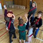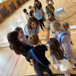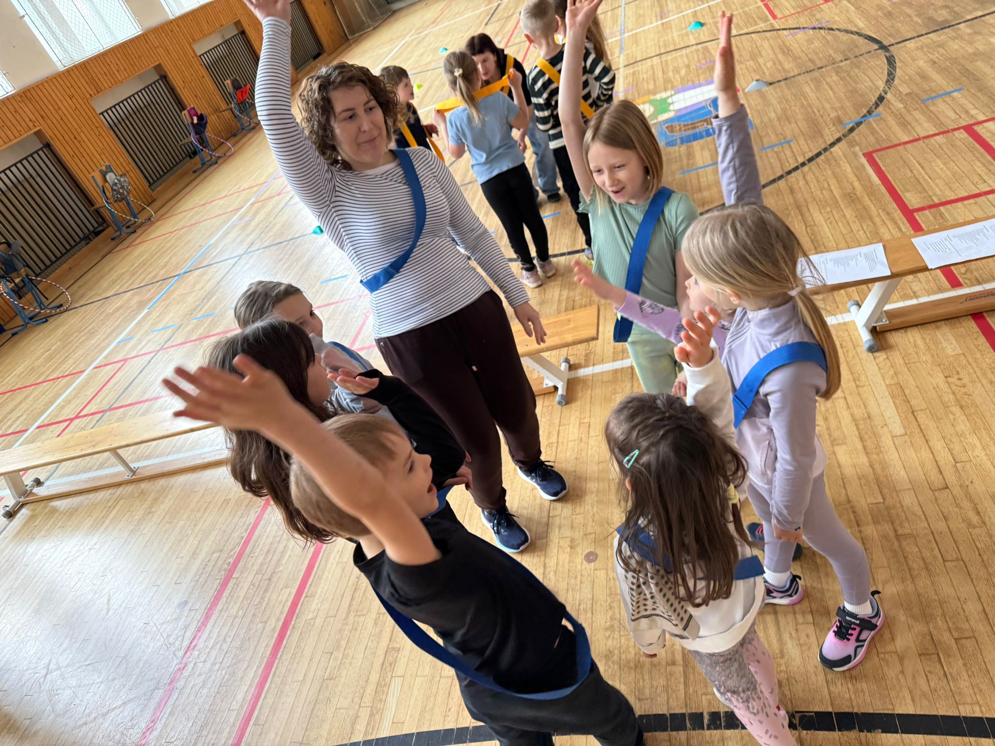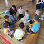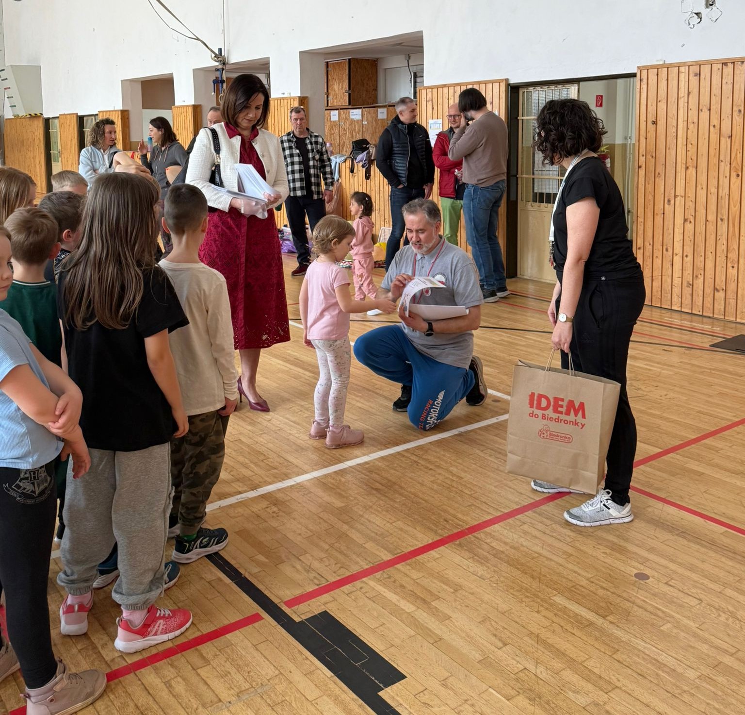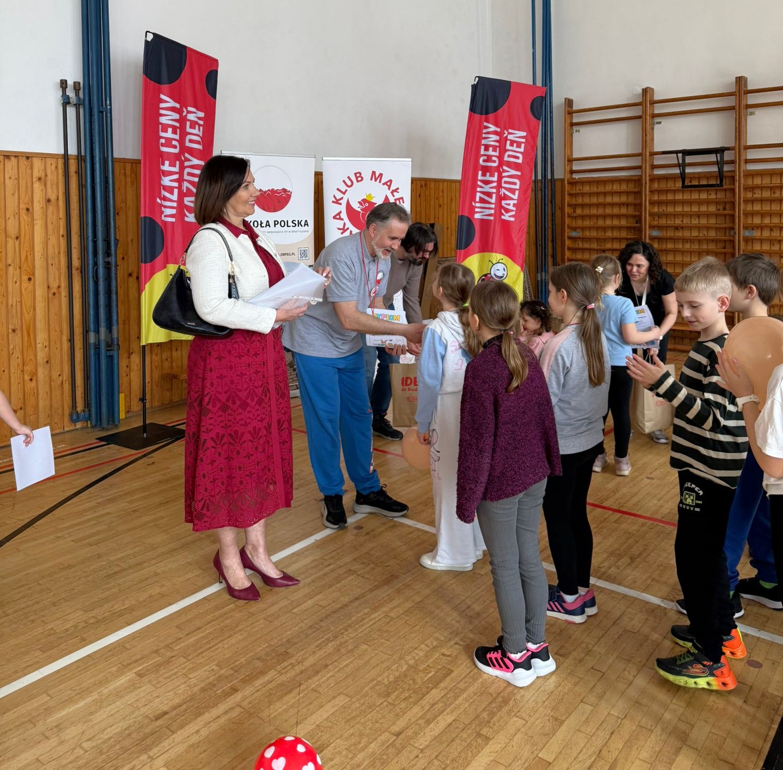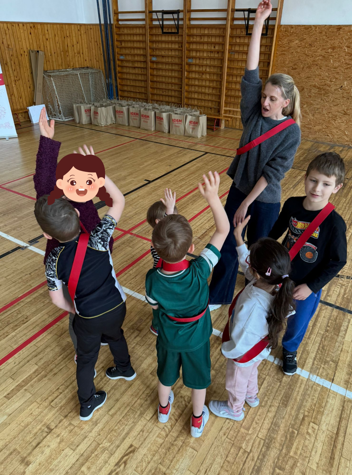 Czym byłby Wielkanocny Dzień Sportu i Kreatywności bez części sportowej? No właśnie! Dlatego również i w tym roku nasza Szkoła Polska we współpracy z zaprzyjaźnionym Klubem Małego Polaka podtrzymała trzyletnią tradycję i zorganizowała na sali gimnastycznej zabawy sportowe. Uczestniczyły w nich nasze polonijne przedszkolaki oraz uczniowie klas I–III. Tematyka zabaw łączyła w sobie zarówno motywy wielkanocne, jak i motywy górskie, dopasowane do zajęć, w których uczestniczyli tego dnia starsi uczniowie. Nad całością czuwała prowadząca Klub Małego Polaka przy wsparciu dyrektora naszej szkoły. Najważniejszą rolę odegrały jednak szkolno-Klubikowe mamy, które wzięły na siebie rolę opiekunek poszczególnych drużyn i wspaniale wspierały i integrowały naszych najmłodszych, ucząc je ducha fair play. Dzieci kończyły zabawę z niezwykle szerokimi uśmiechami na ustach, które pogłębiły tylko torby pełne słodyczy od naszego życzliwego sponsora, sieci sklepów Biedronka. Szkoła i Klub Małego Polaka dorzuciły do tego jeszcze piękne dyplomy za udział w Dniu Sportu, które wręczył uczestnikom pan dyrektor z wychowawczynią klas I-III, ukochaną panią Bożenką. Jak podsumowała wydarzenie jedna z mam: Była to naprawdę superimpreza!