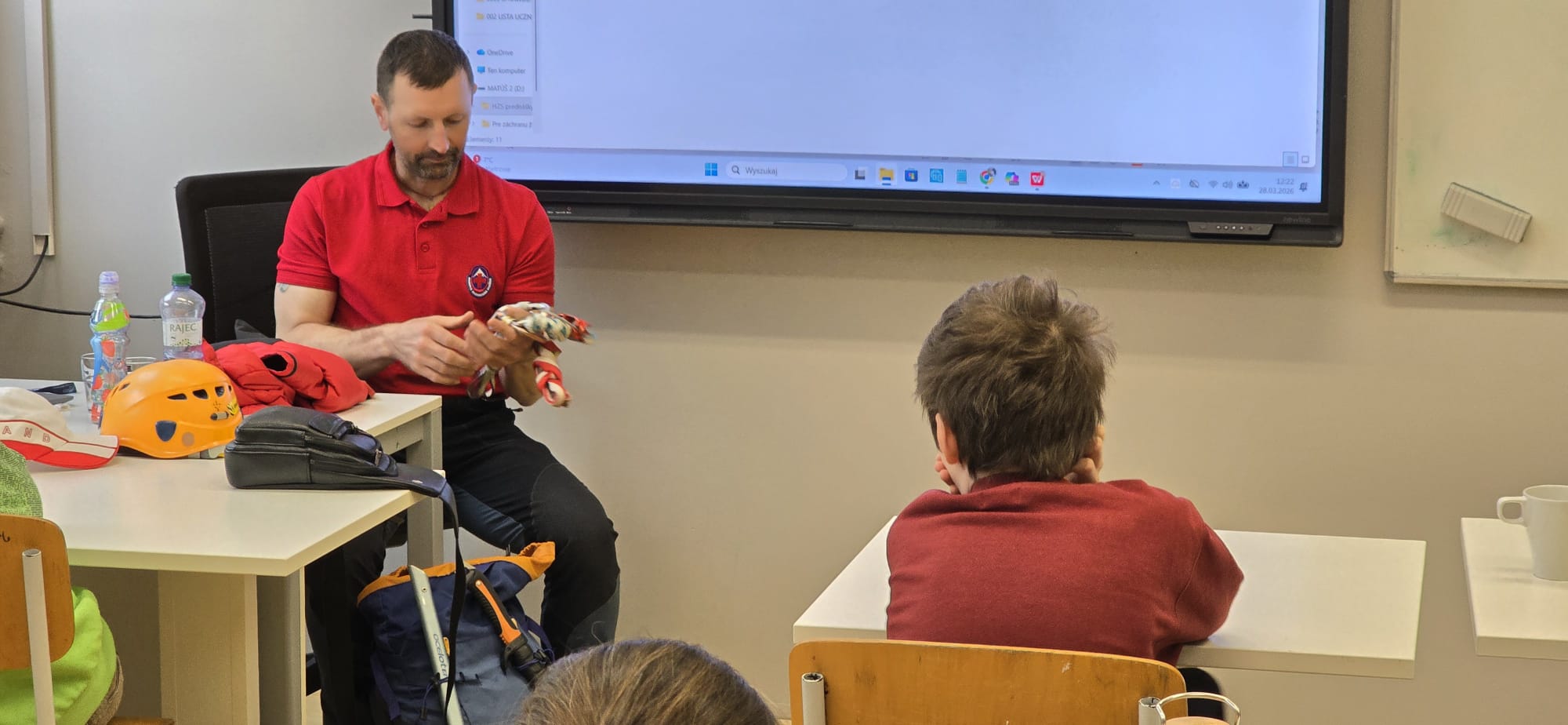Prezentacji towarzyszył pokaz sprzętu ratowniczego, a uczniowie zasypali naszego gościa pytaniami – na wszystkie otrzymali wyczerpujące odpowiedzi.