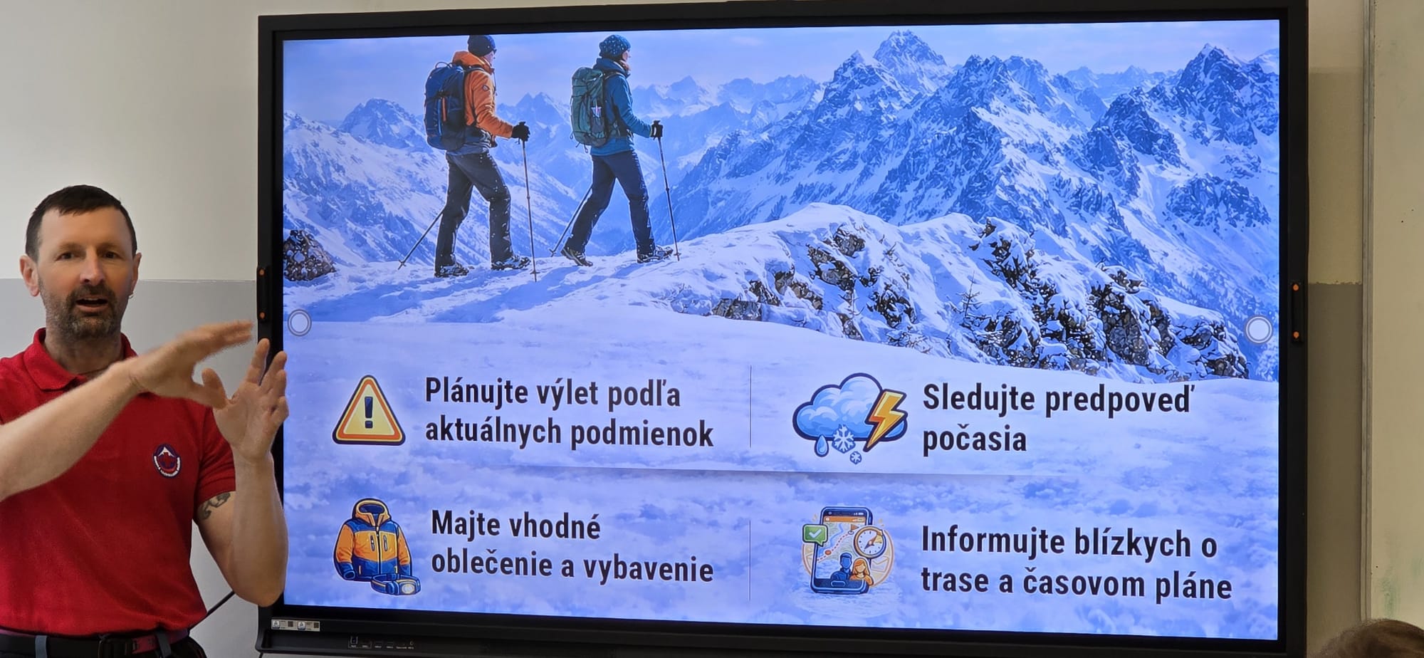 Na zaproszenie Konsula Honorowego z Liptowskiego Mikułasza, pana Tadeusza Frąckowiaka, który objął wspomniany projekt edukacyjny honorowym patronatem, odwiedził nas dyrektor Horskej Záchrannej Služby – pan ing. Bc. Martin Matúšek.