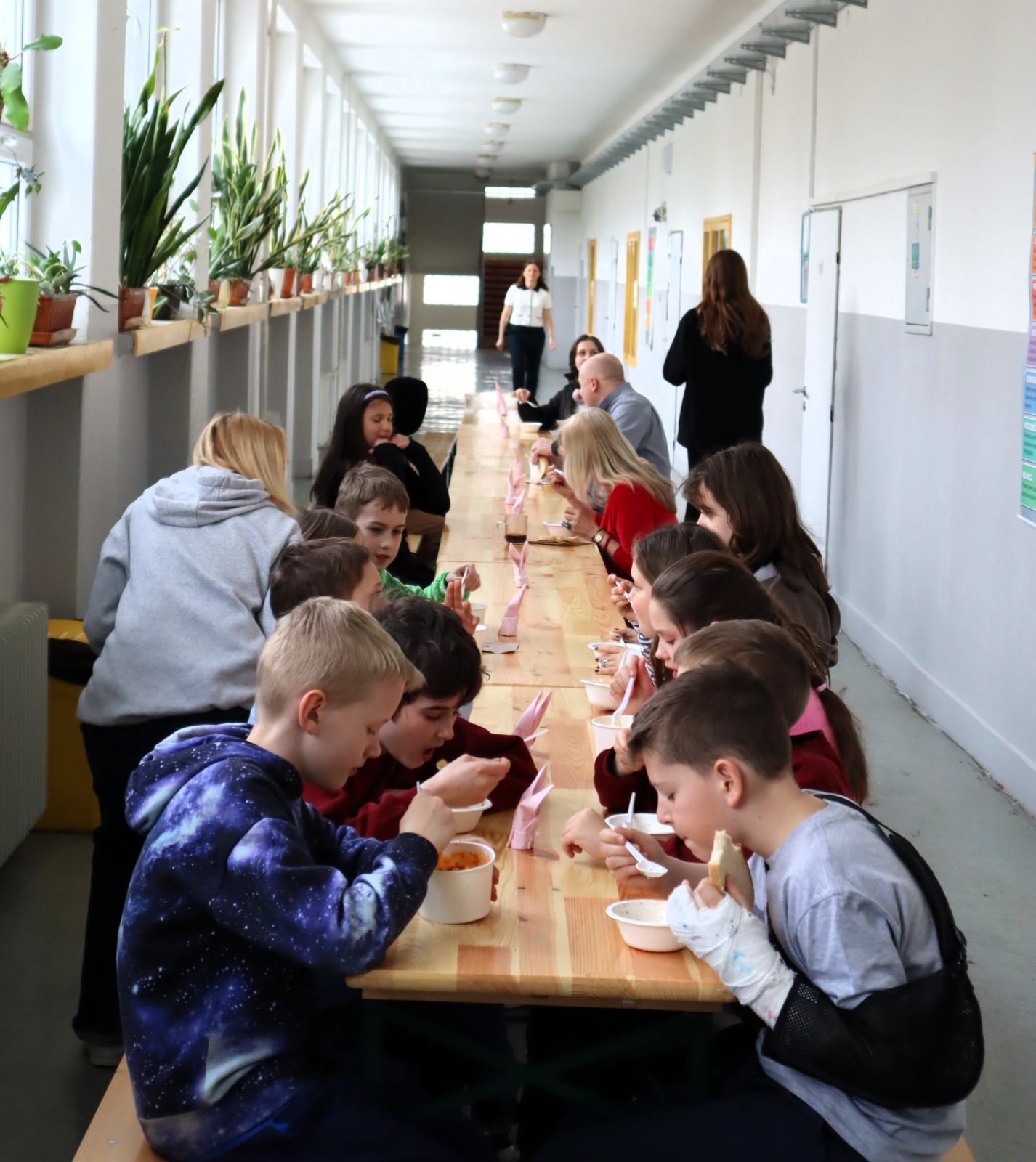 Nie zabrakło też ciepłego posiłku przygotowanego przez Radę Rodziców – był makaron z sosem pomidorowym oraz tradycyjny, wielkanocny żurek, który zniknął w mgnieniu oka .