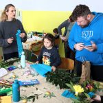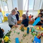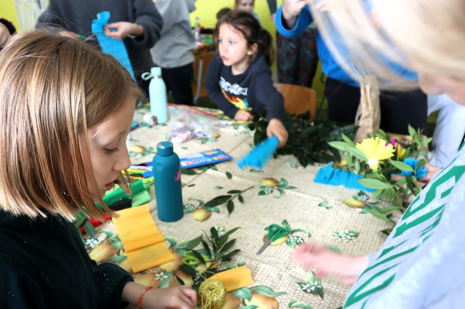 Na stołach działo się sporo! Dzieci robiły palmy wielkanocne